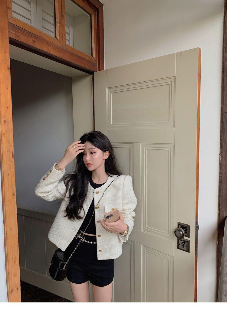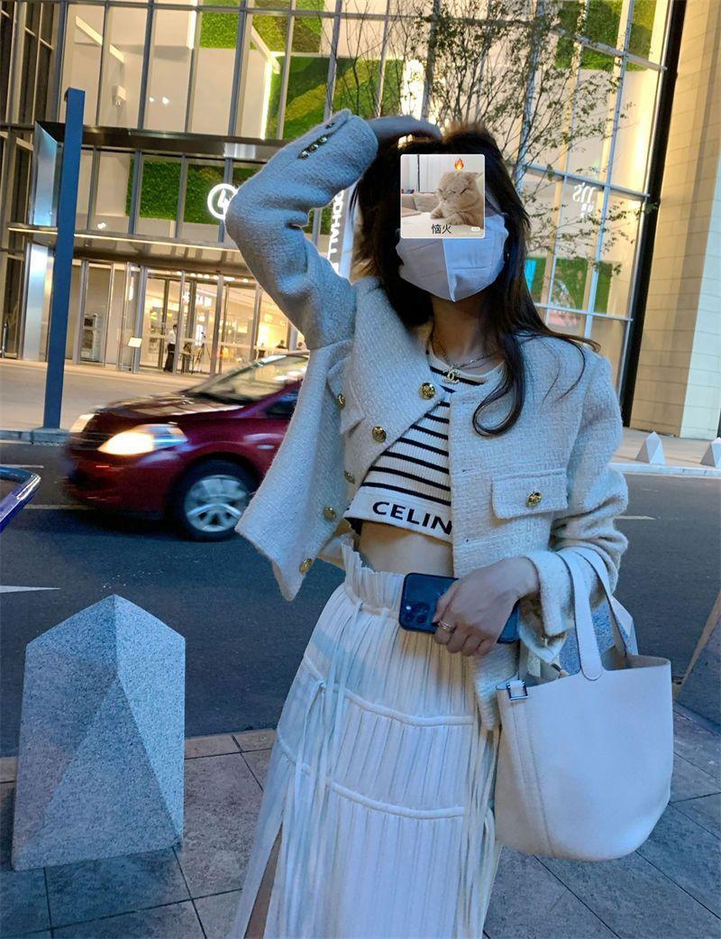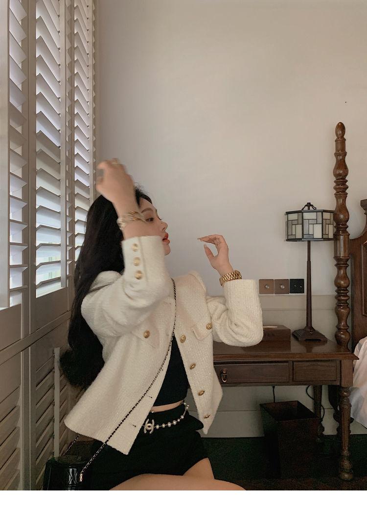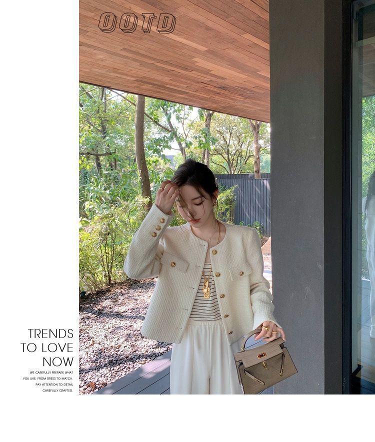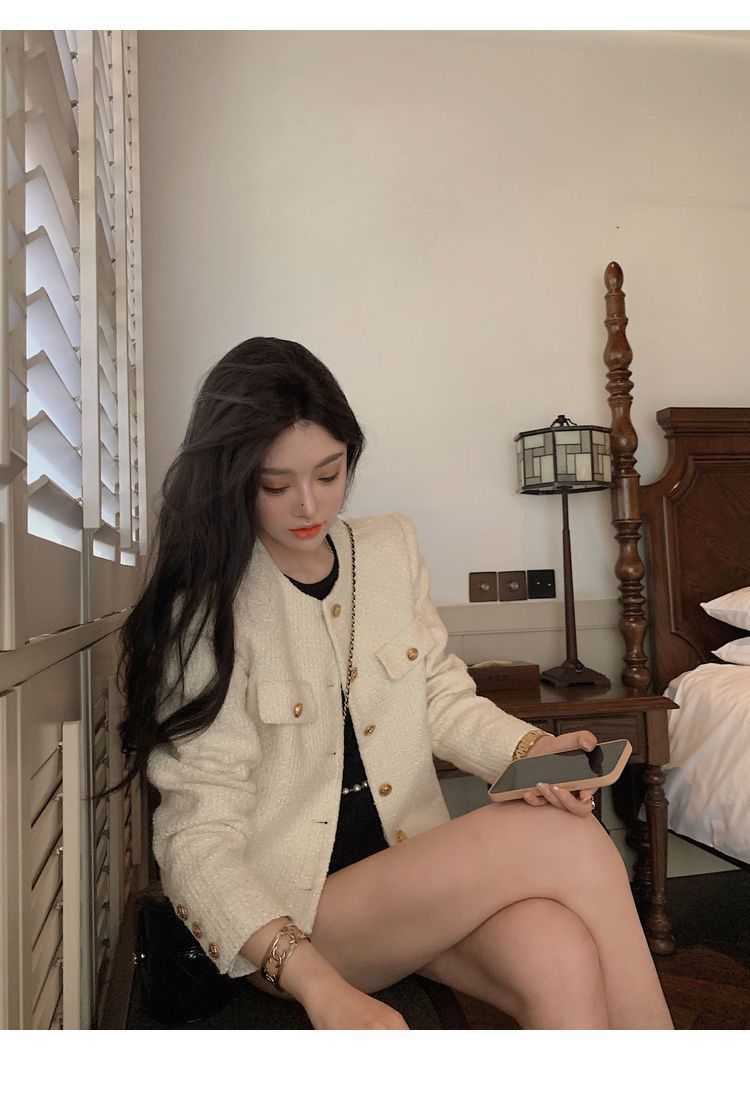 Buen Tejido Otoño e Invierno 2024 Abrigo Estilo Fragante para Mujer Primavera y Otoño Corto de Alta Gama Estilo Callejero Elegante Socialité Top