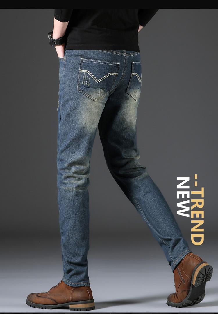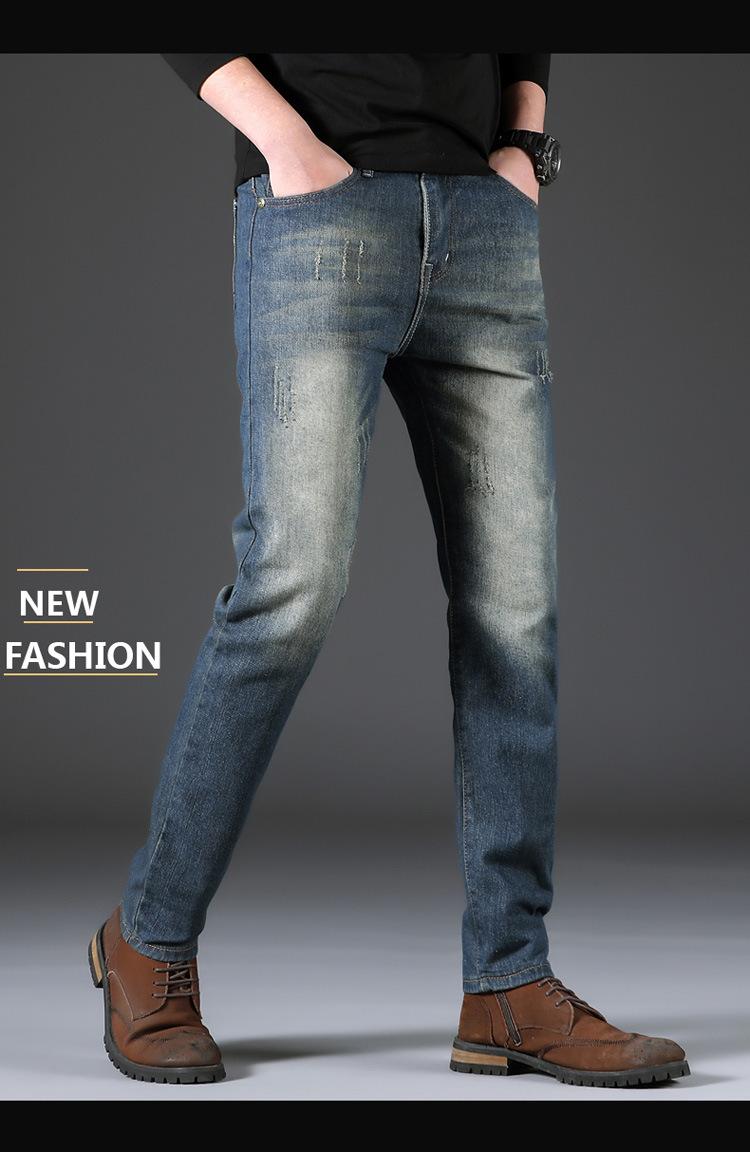 Pantalones vaqueros elásticos de cintura media para hombre, rectos, ajustados, casuales, para jóvenes, modernos y holgados.