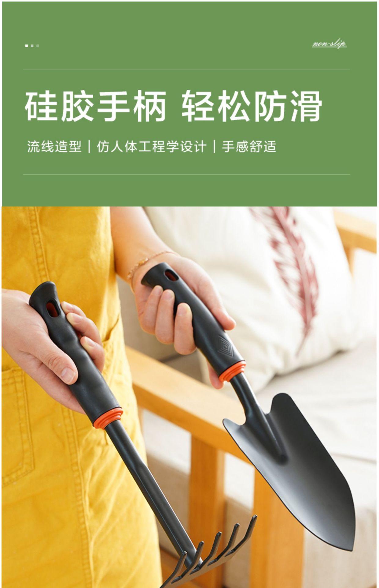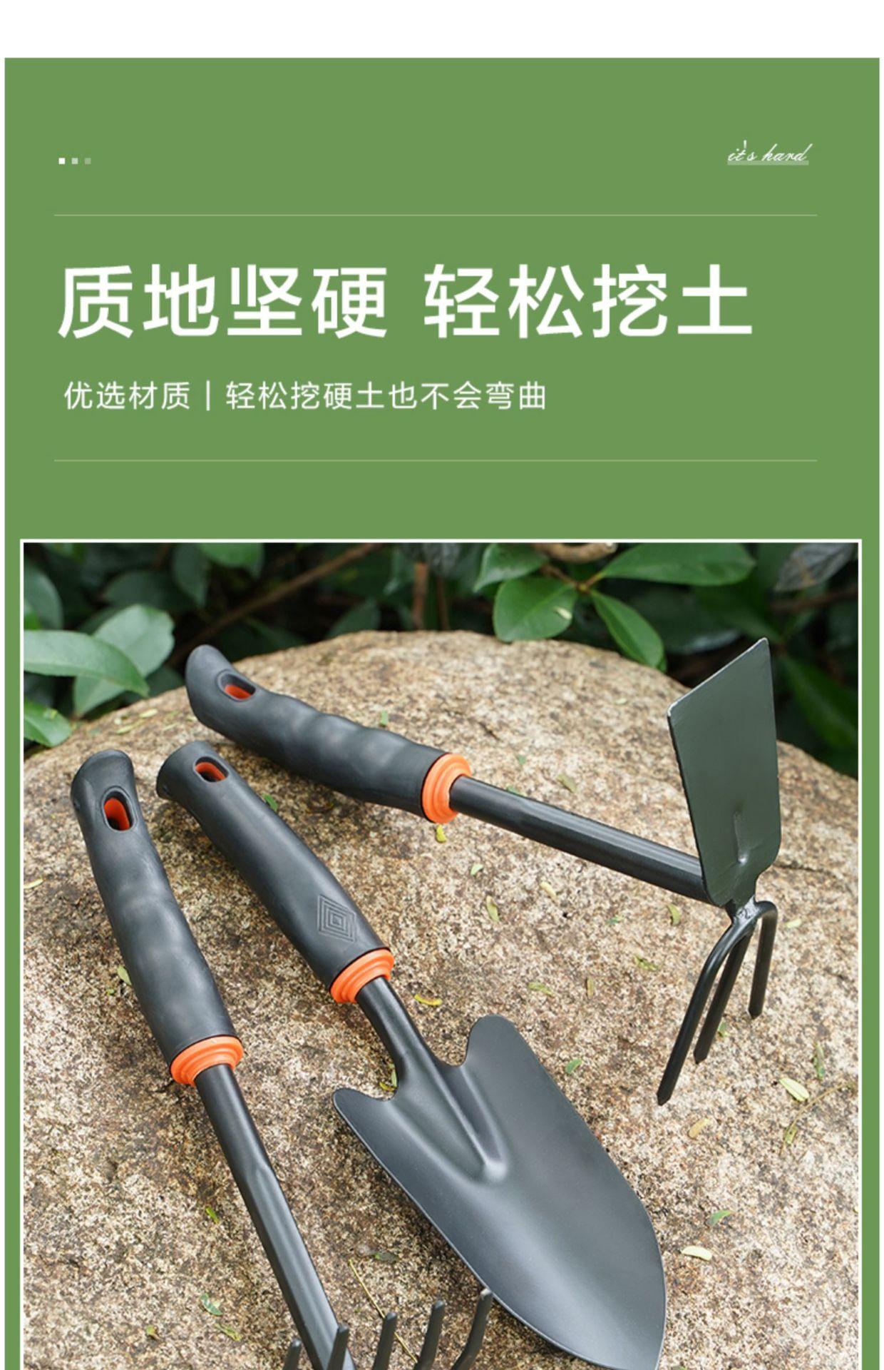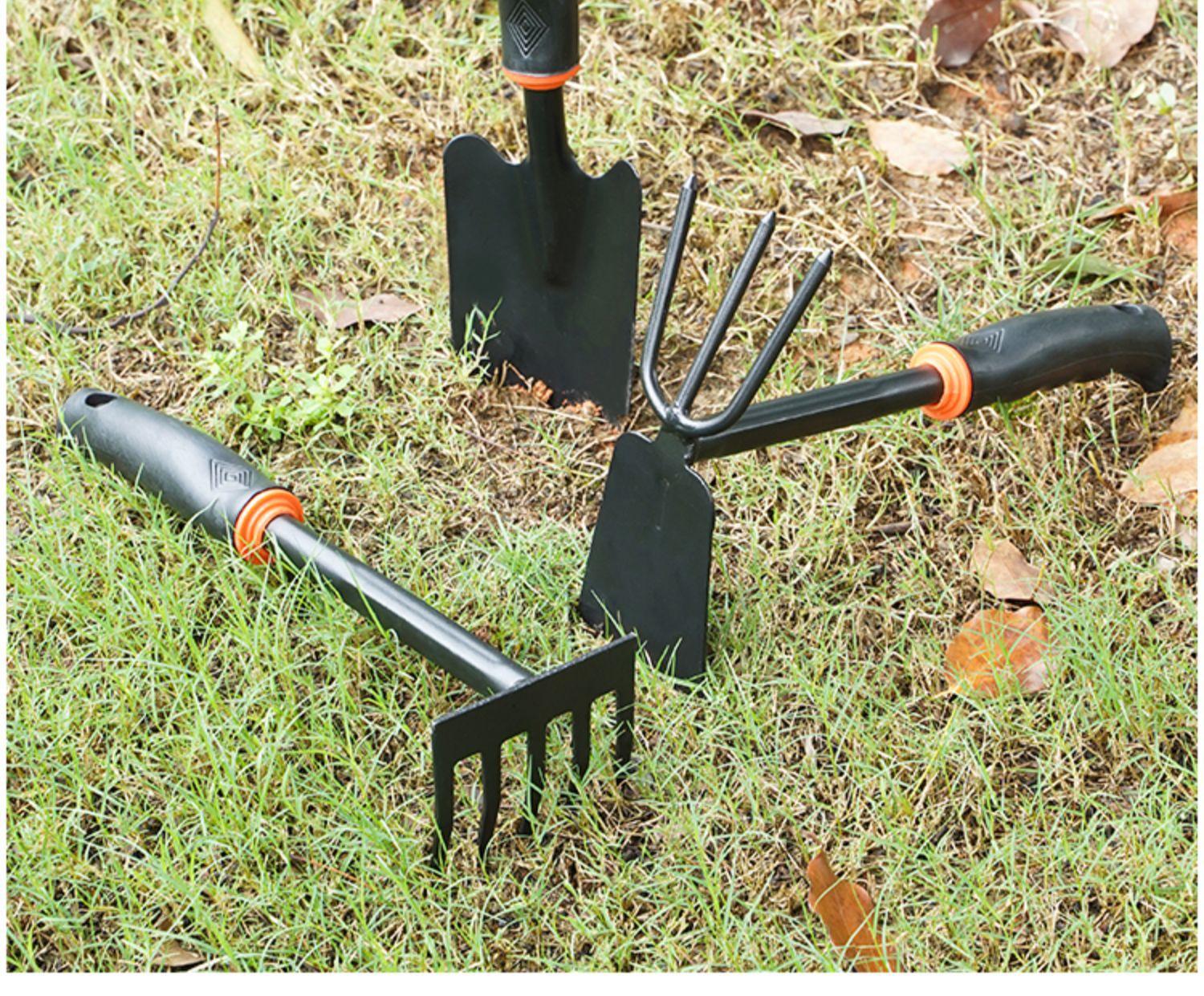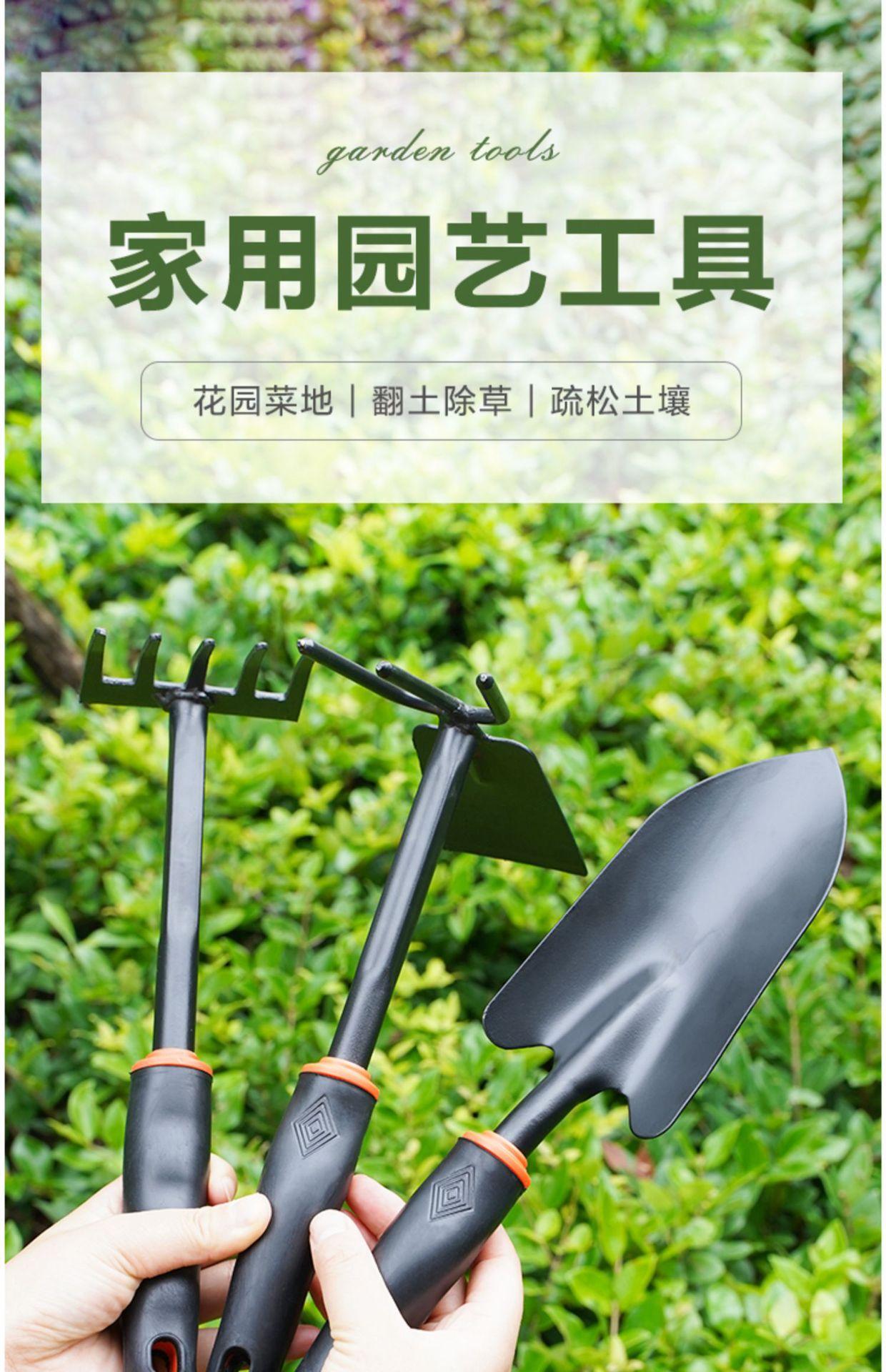 Juego de jardinería de tres piezas para el hogar, plantación de flores y cultivo de verduras, herramientas para aflojar el suelo, pala de jardín, rastrillo, excavación al aire libre, verduras silvestres