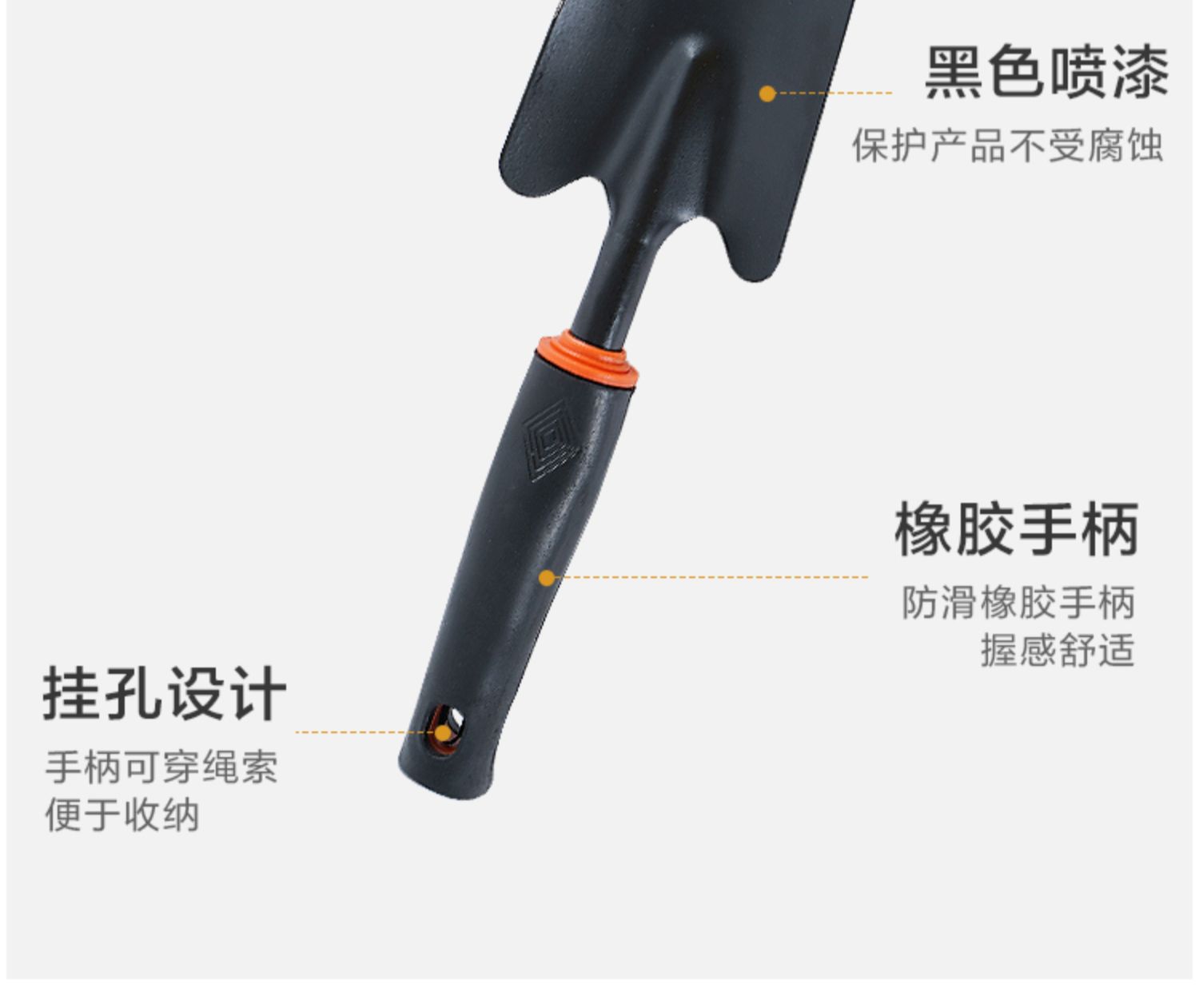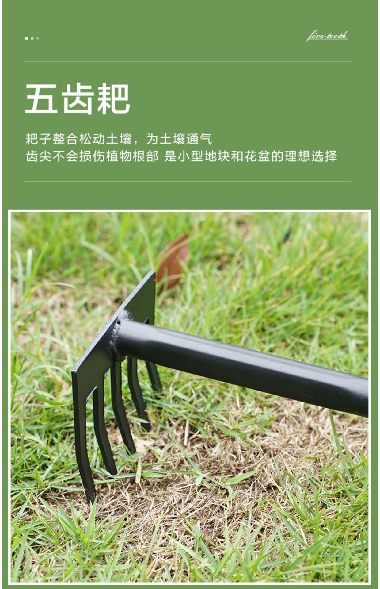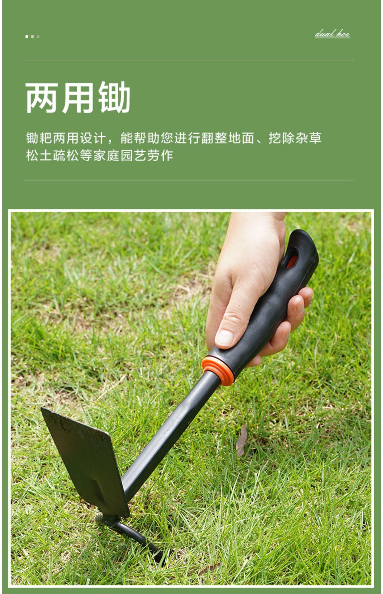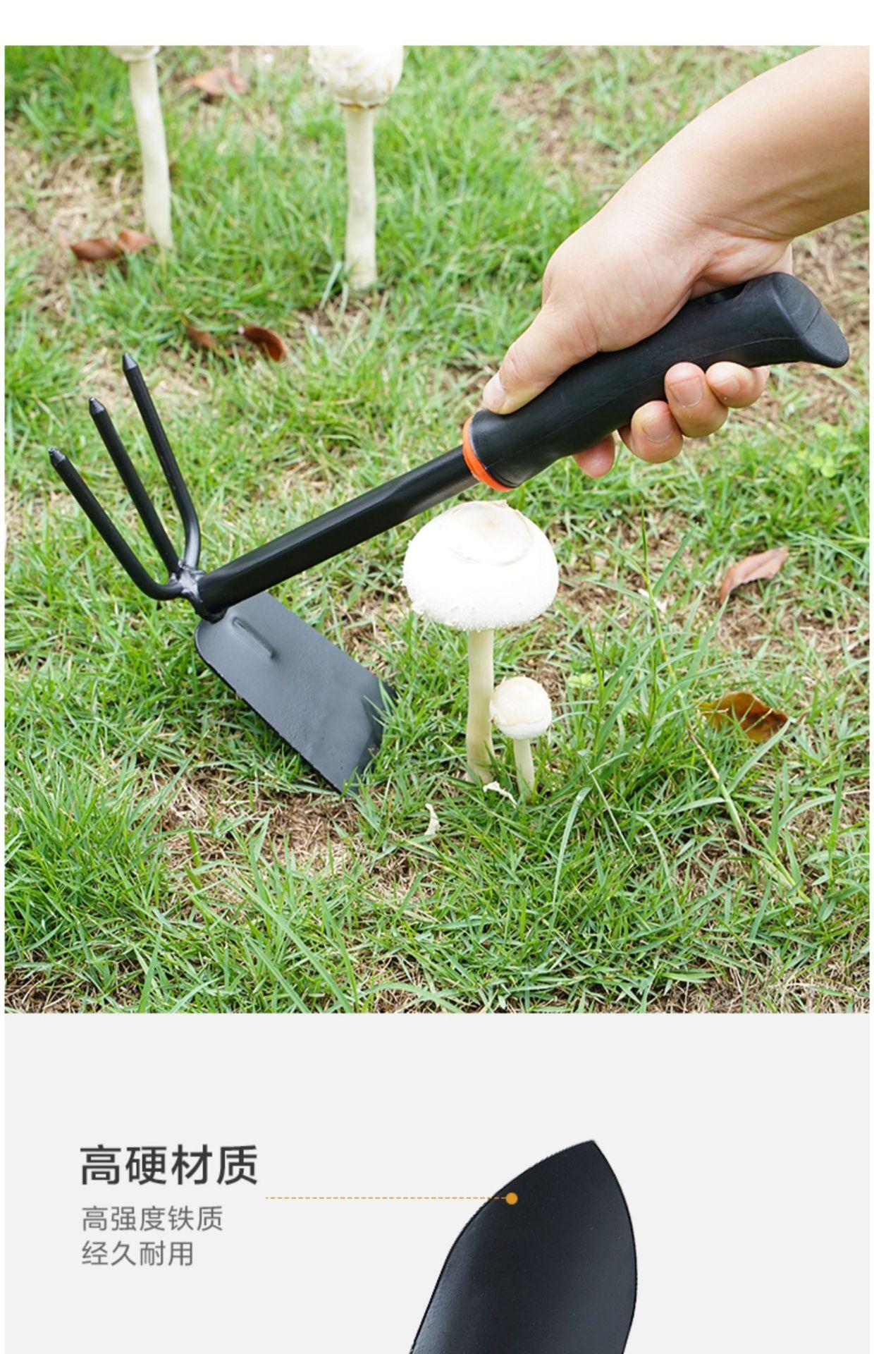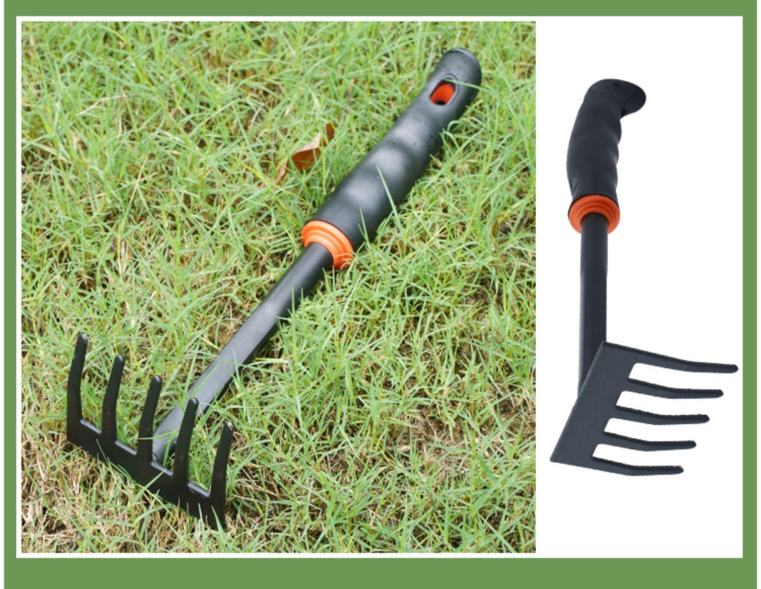 Large spatula with rubber handle, Five-tooth rake with rubber handle, Dual-purpose hoe with rubber handle, Gar...