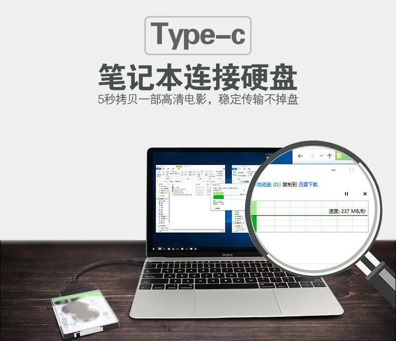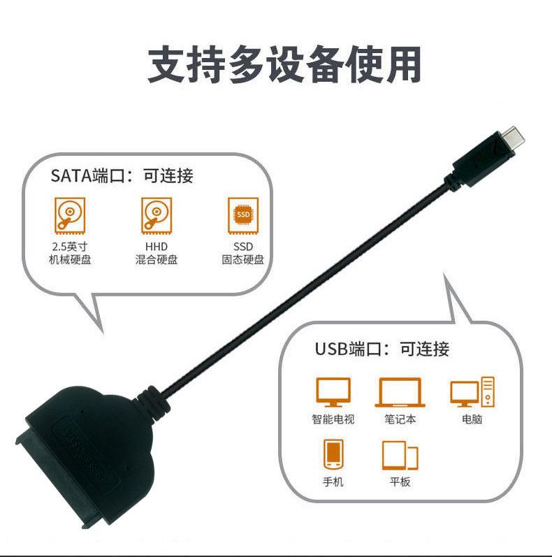 Cable de datos USB 3.1 a SATA tipo C, cable de unidad fácil de usar, transferencia de disco duro externo HDD/SSD de 2,5 pulgadas