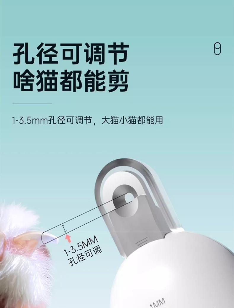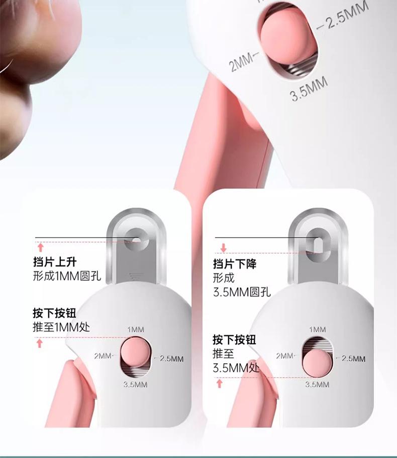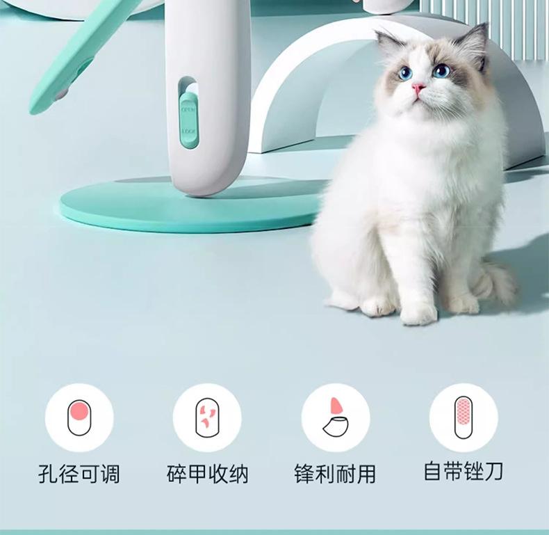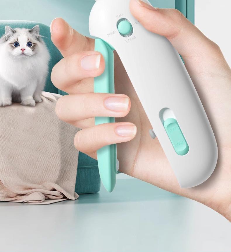 Cortaúñas ajustable con empuje por gravedad para gatos y perros con artefacto ligero antisalpicaduras.