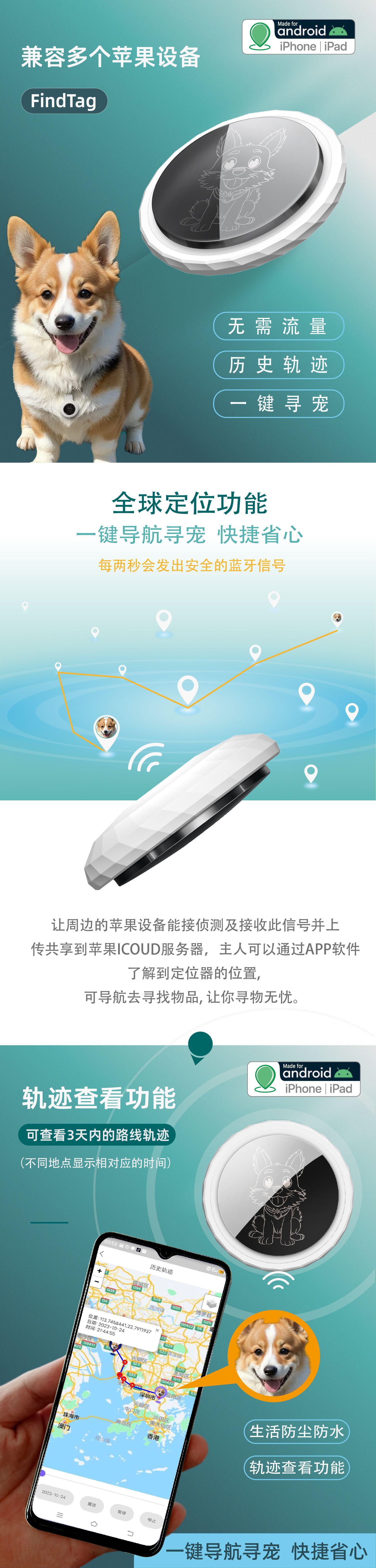 Ya sean paseos diarios, viajes o mascotas que se quedan solas en casa, FindTag puede ser un "guardaespaldas invisible". Envío directo de fábrica, admite integración de productos, LOGO personalizado, la inspección completa antes del envío garantiza la calidad, tanto los usuarios de Android como de Apple pueden comprar con confianza.