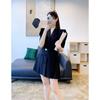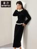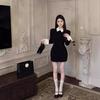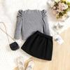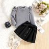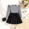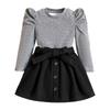 Traje infantil transfronterizo de comercio exterior, talla pequeña y mediana, estilo europeo y americano, otoño e invierno, cuello redondo, manga larga, chaqueta, falda corta con botones y cinturón.