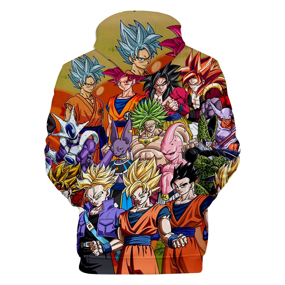 2019 Nuevo Amazon Ventas Directas de Fábrica Dragon Ball Ropa de Personaje Personalizada Impresión Digital 3D Sudadera con Capucha para Hombre y Mujer