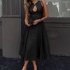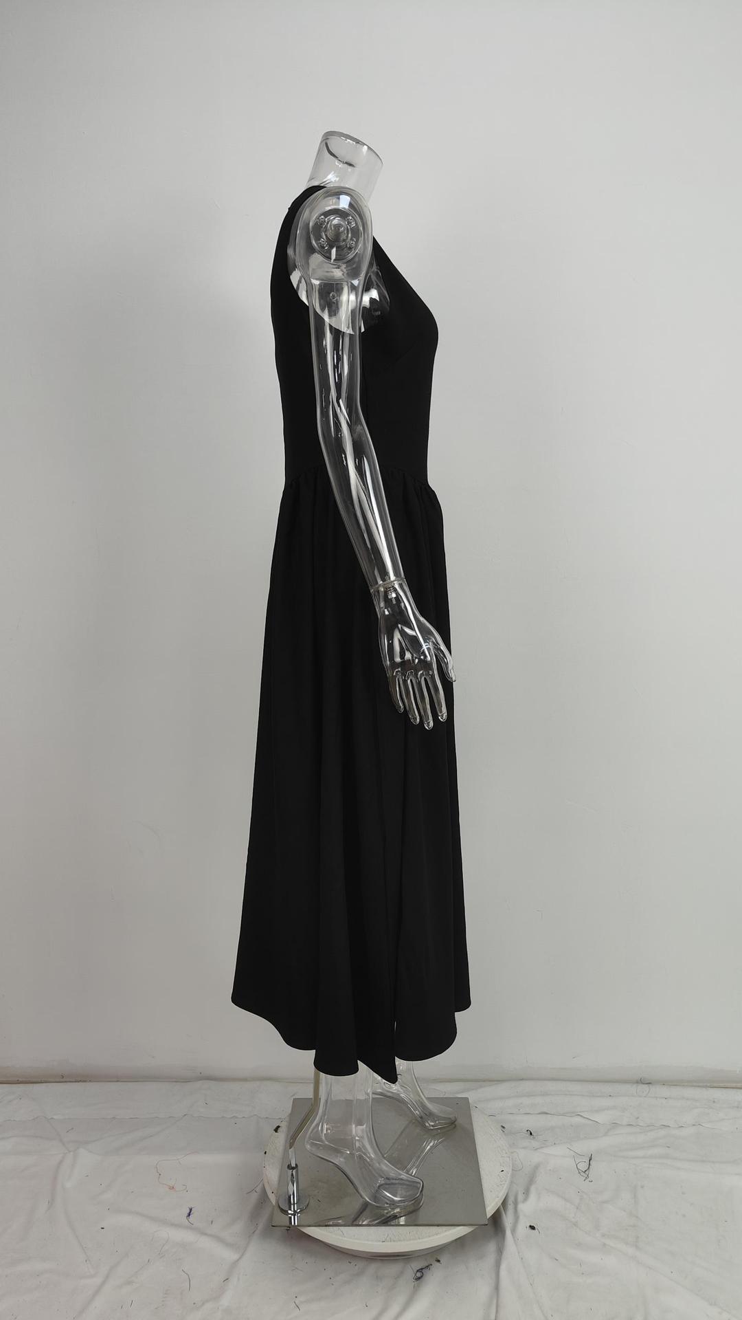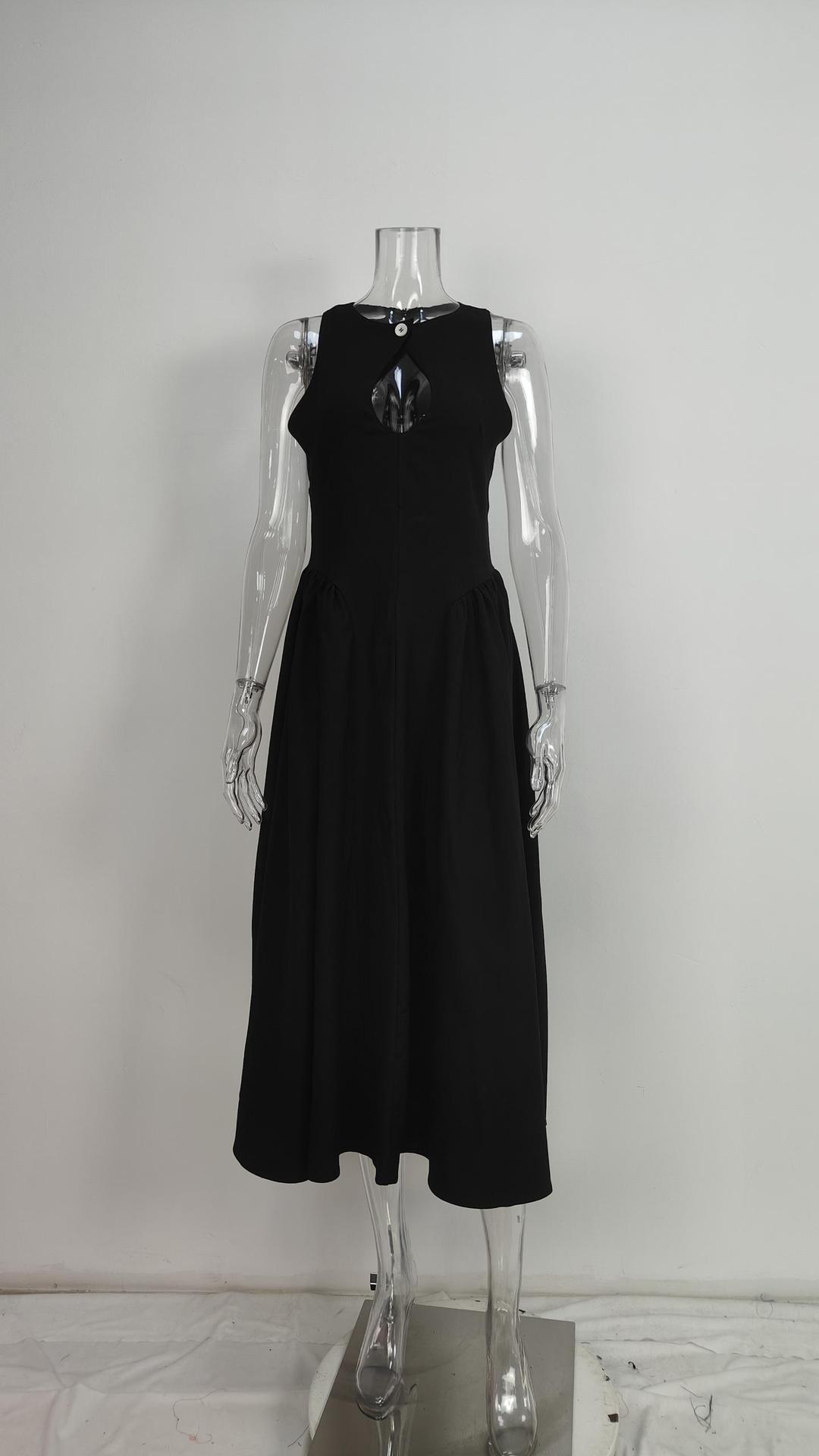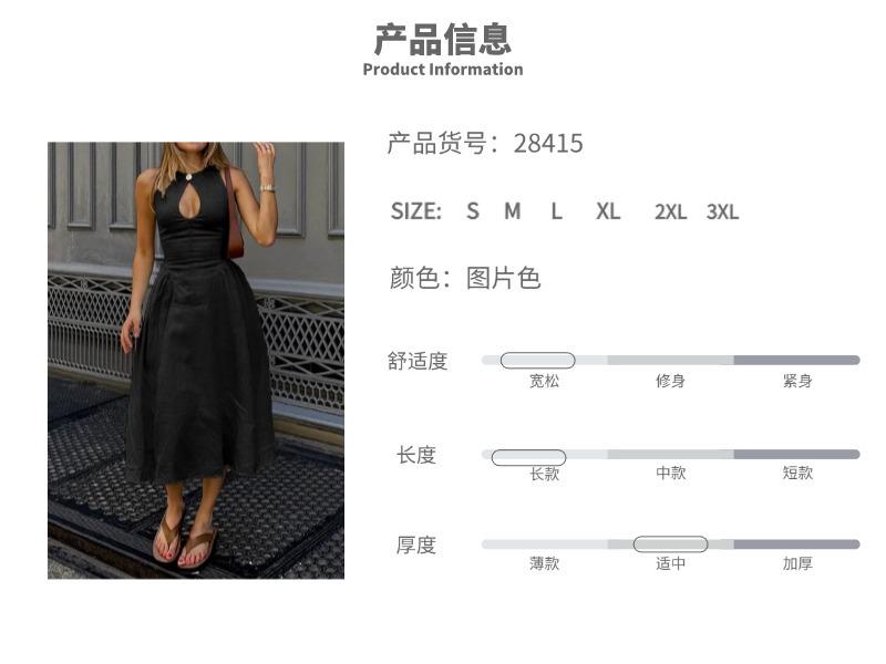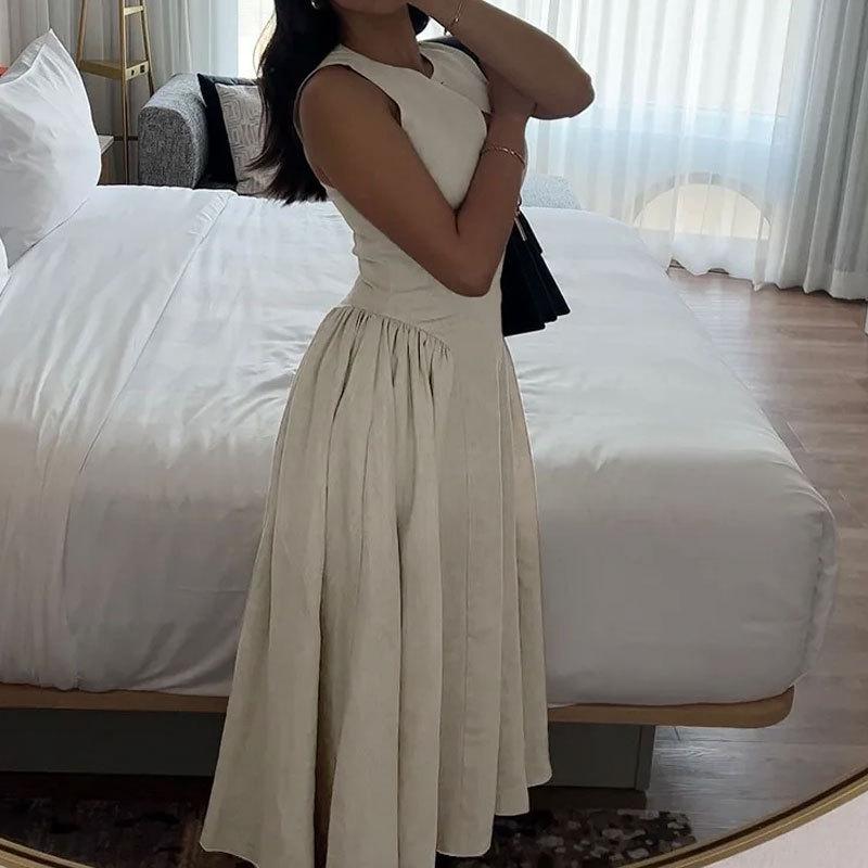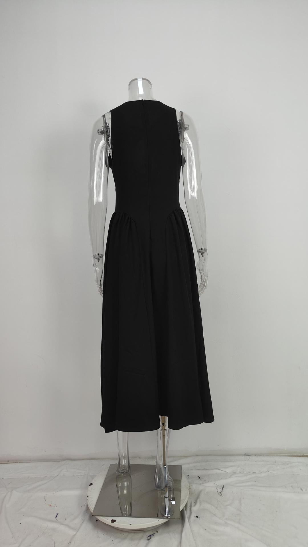 Vestido de otoño 2024, nuevo vestido largo plisado sin mangas con cuello redondo y elegante para mujer europea y americana transfronteriza