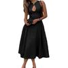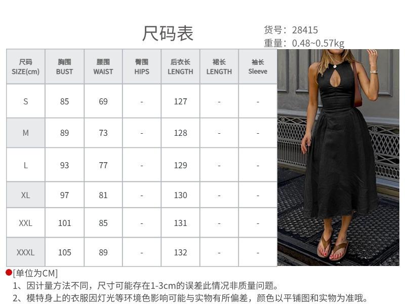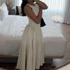 Ropa de mujer europea y americana 2024 comercio exterior otoño nuevo color sólido sexy cuello en U cintura plisada cabestrillo gran vestido femenino