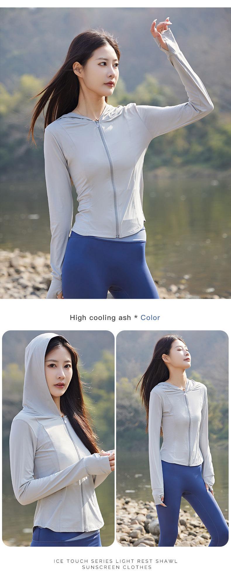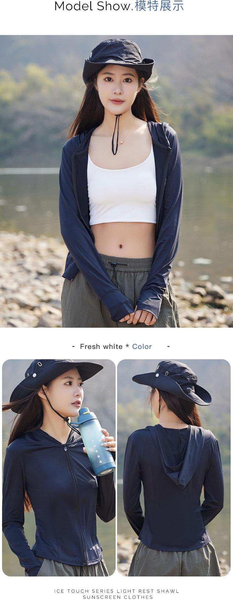 Ropa popular de protección solar con capucha adelgazante para mujer, ropa de protección solar de verano, abrigo transpirable con protección UV para exteriores, transpirable, de seda de hielo.