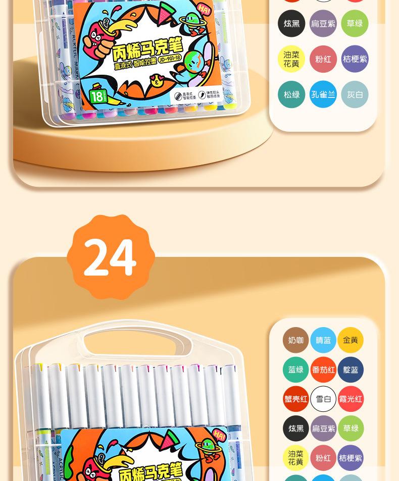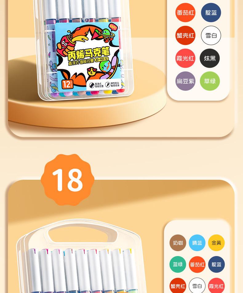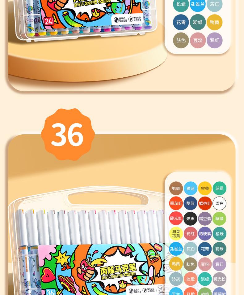 Rotulador acrílico de punta suave, líquido directo, opaco, apilable, de 36 y 60 colores complementarios, ideal para estudiantes.