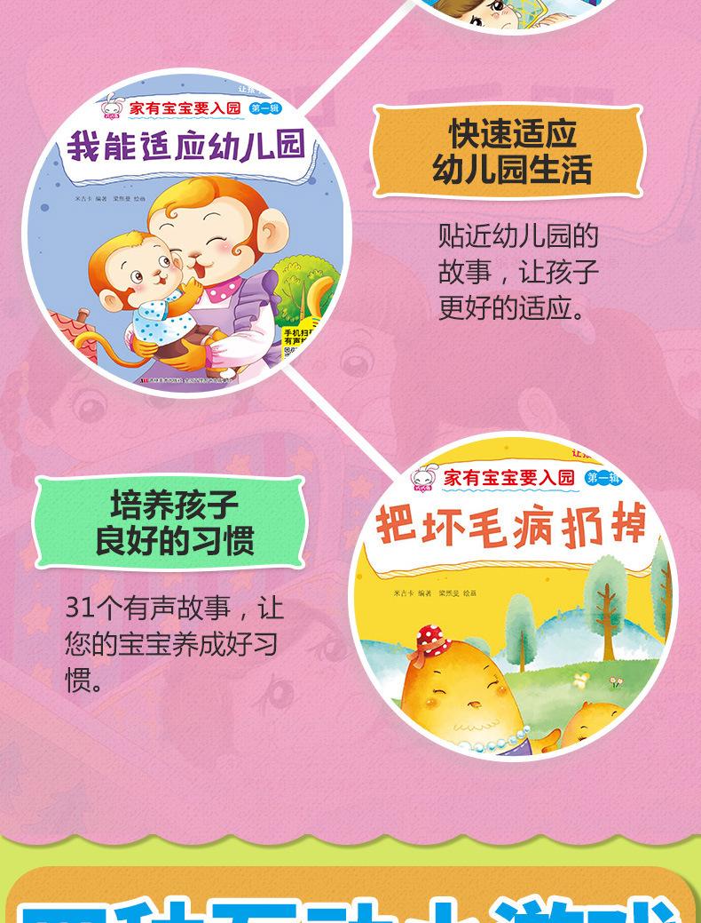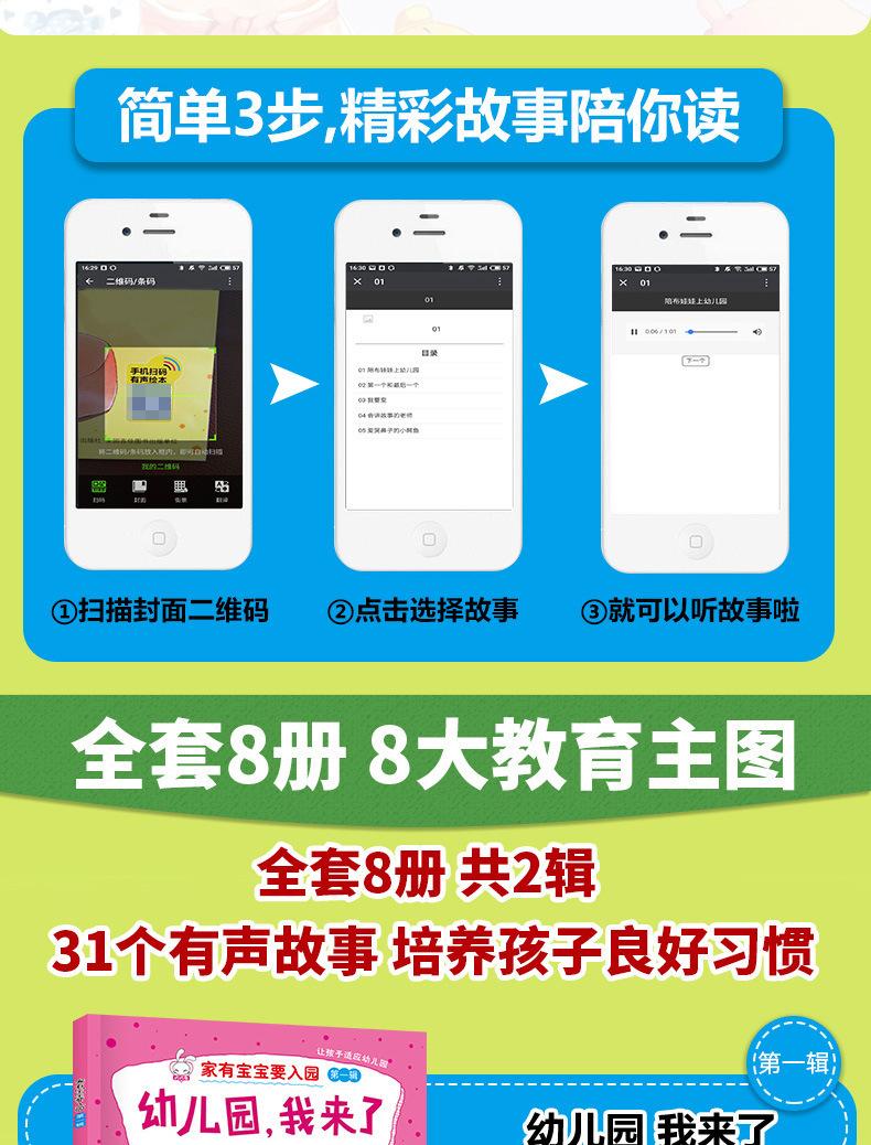 Hay 8 libros ilustrados en audio para que los niños los adapten a los libros ilustrados de iluminación para niños de jardín de infantes.