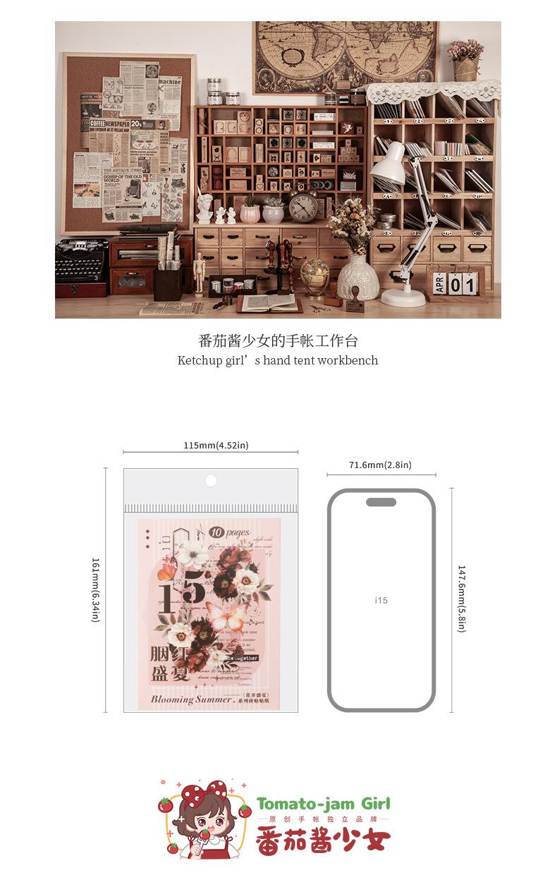 Pegatina de mascota de collage de gran tamaño de la chica Ketchup, serie Blooming Summer, pegatina de decoración de cuenta de mano retro ligera