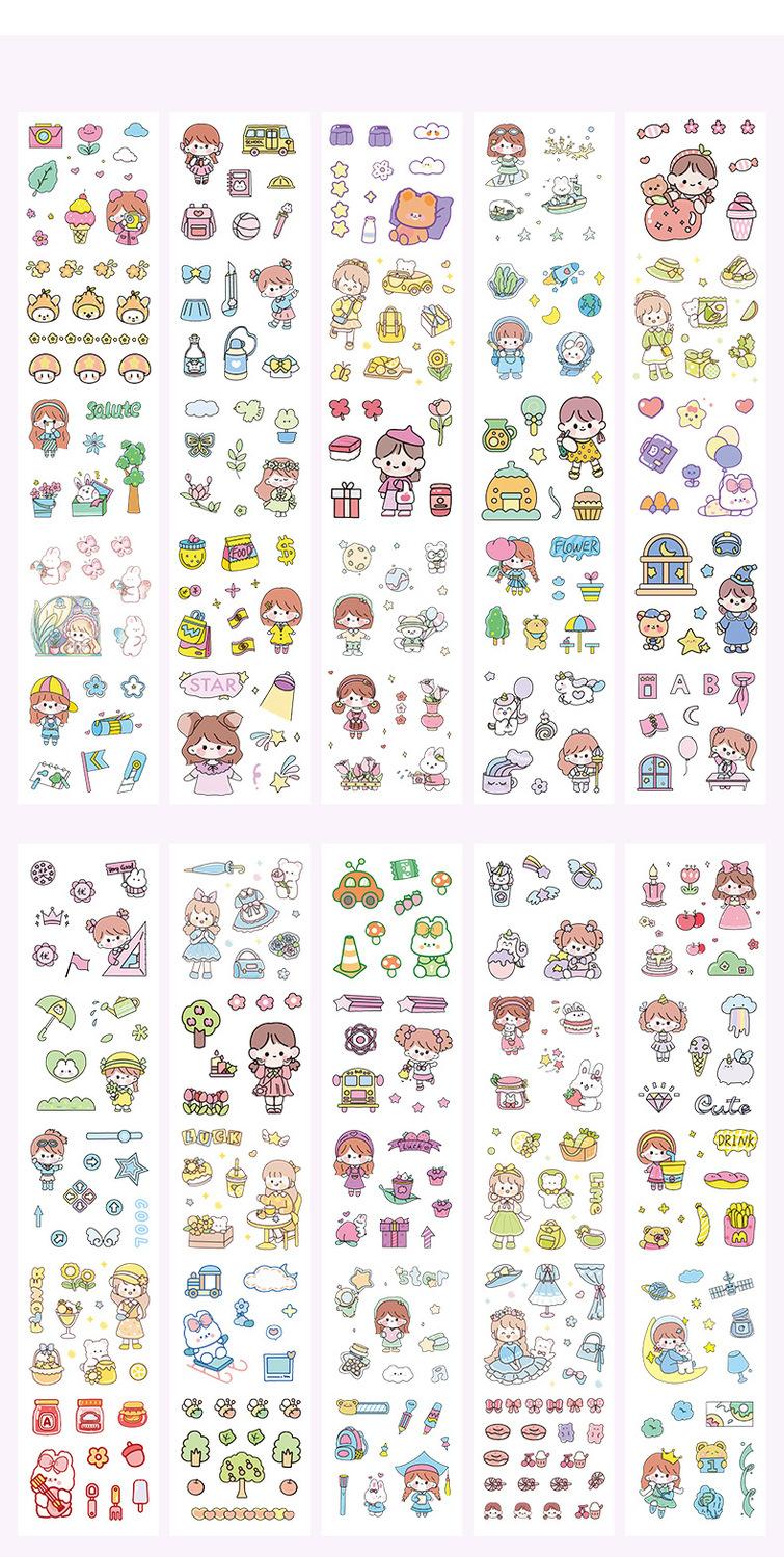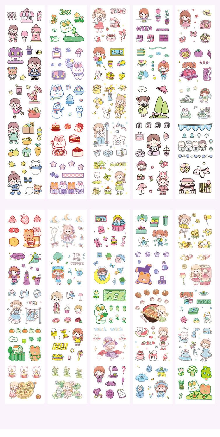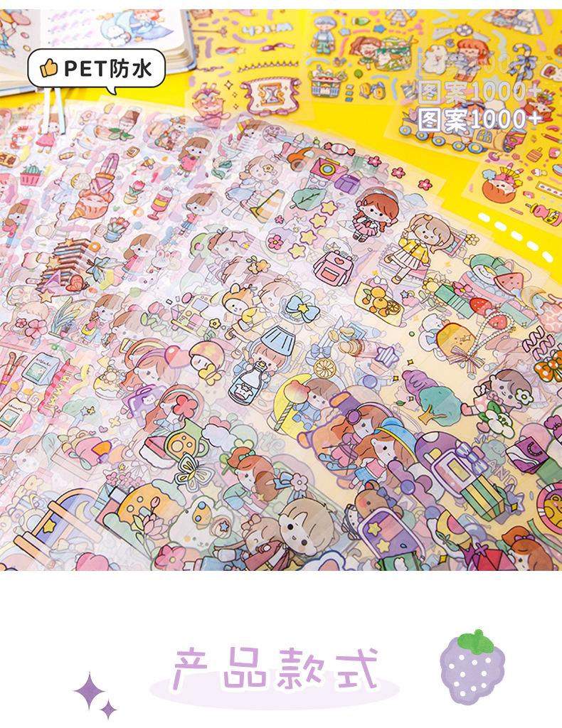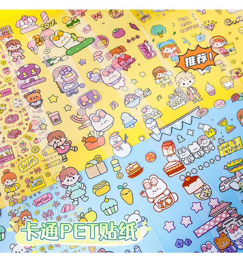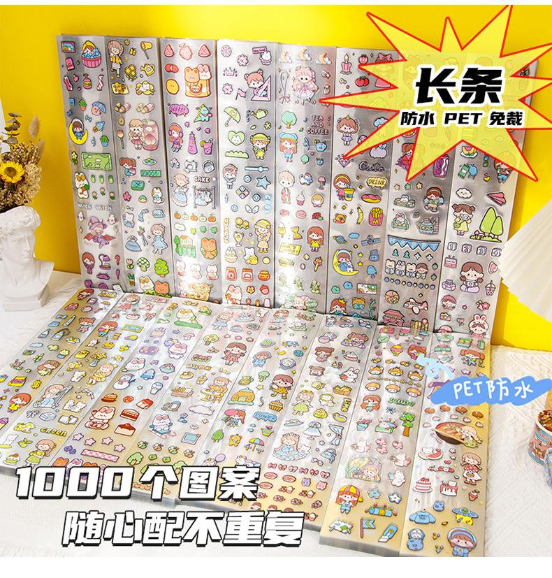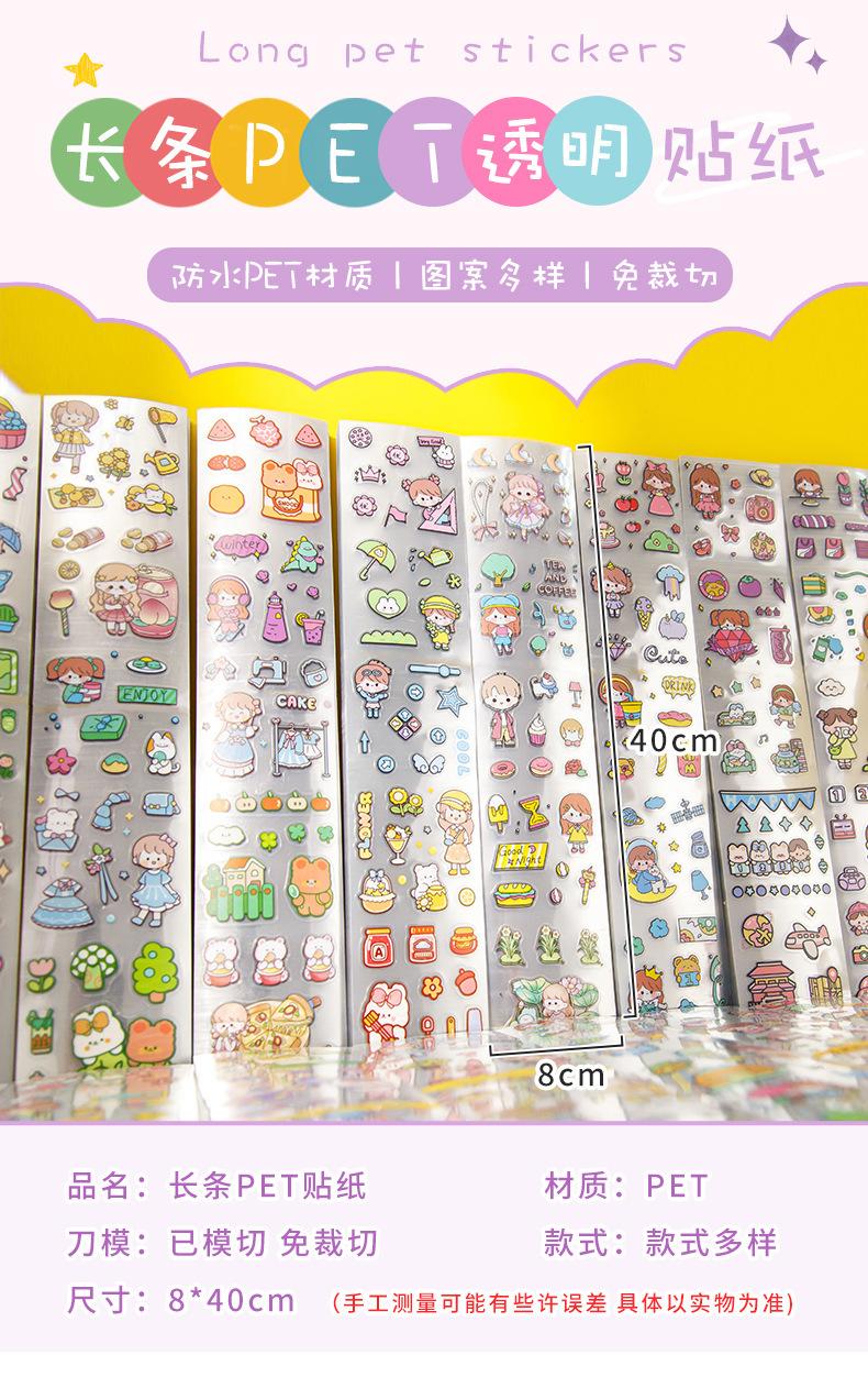 Tira larga tarjeta goo libro de pegatinas para cuenta de mano pegatina niños niña linda caricatura decoración mascota pegatina transparente impermeable