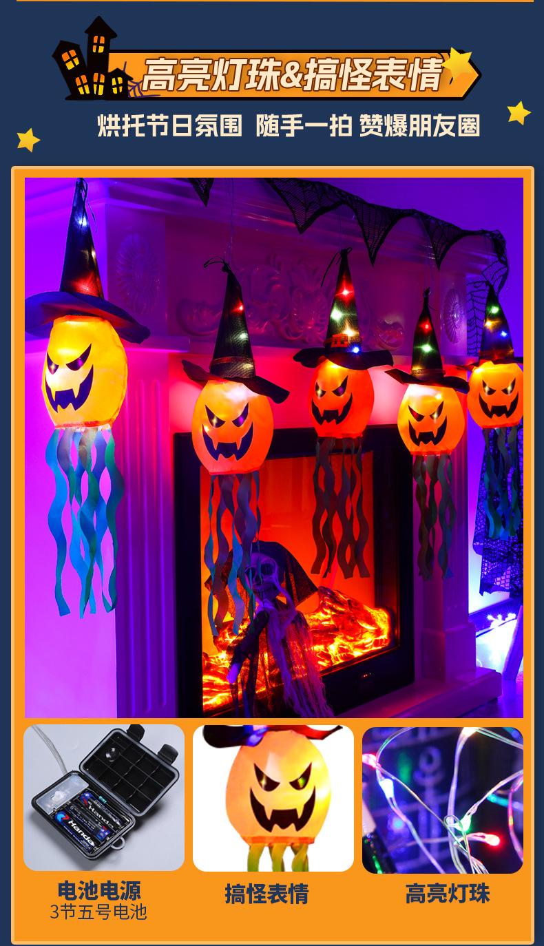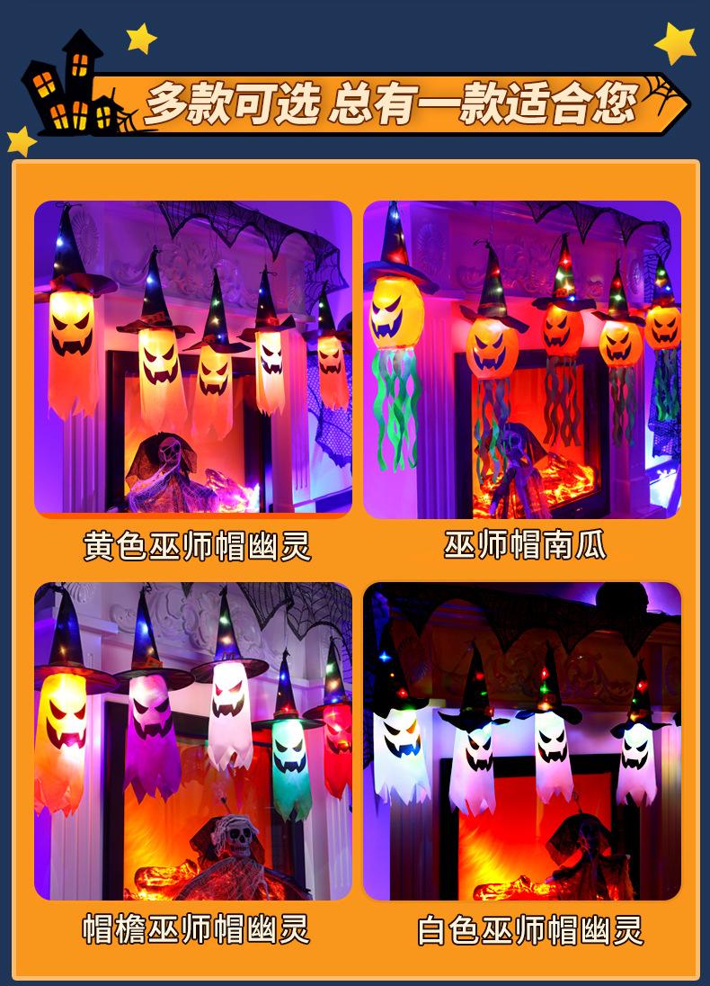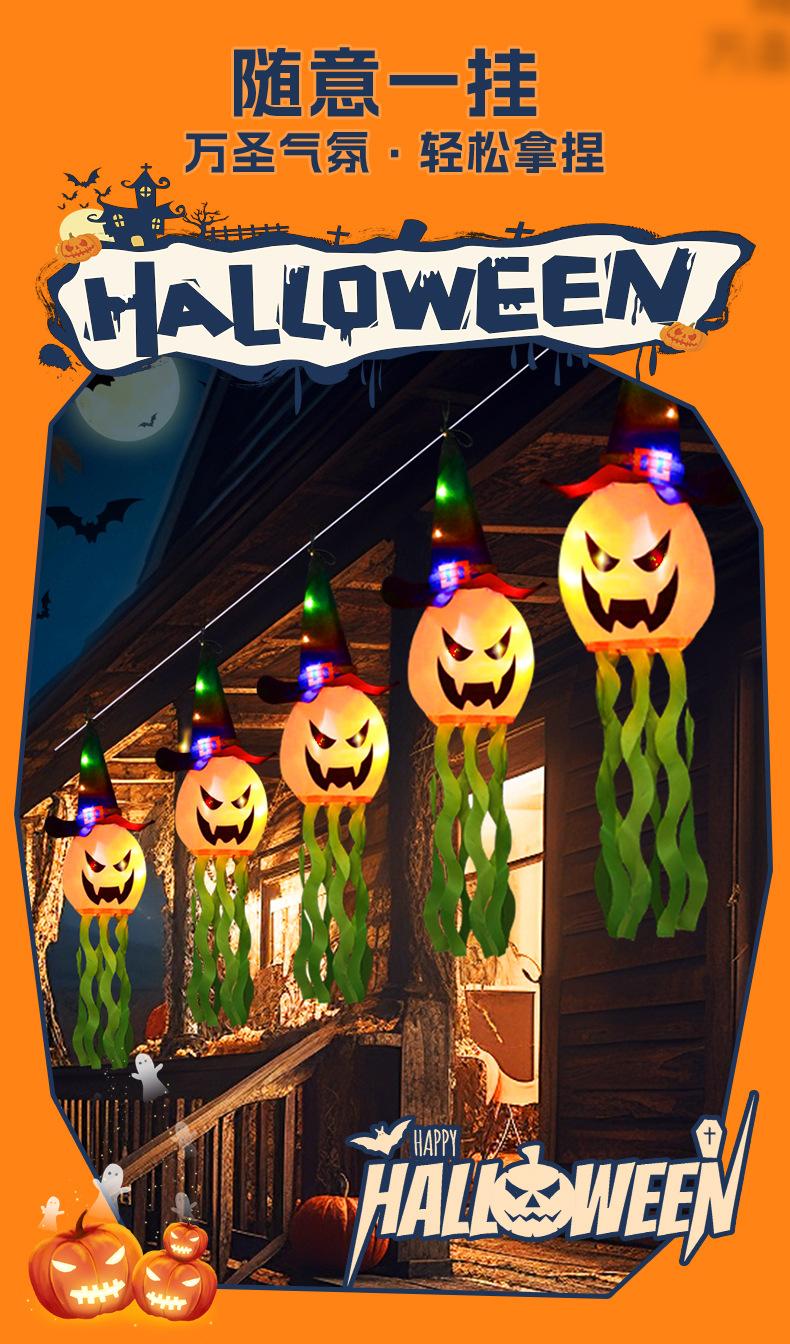 Sombrero de Mago de Halloween Calabaza Led Guirnalda Colorida Festival de Fantasmas Atmósfera de Terror Accesorios de Decoración de Patio Transfronterizo