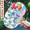 Abanico de papel Xuan engrosado, abanico blanco pintado a mano, abanico antiguo, abanico de papel para manualidades, Día Nacional del Medio Otoño