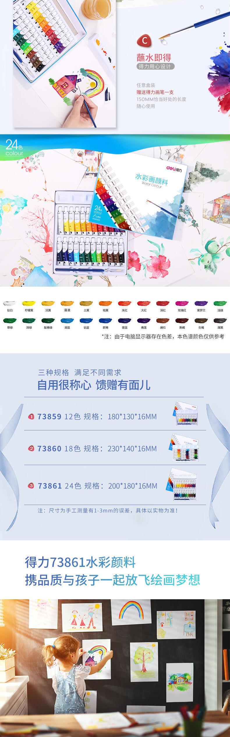 Deli 73861-24 Colores 5 ml Acuarela Pintura Arte Especial Portátil Estudiante Pintura Set Color Papelería