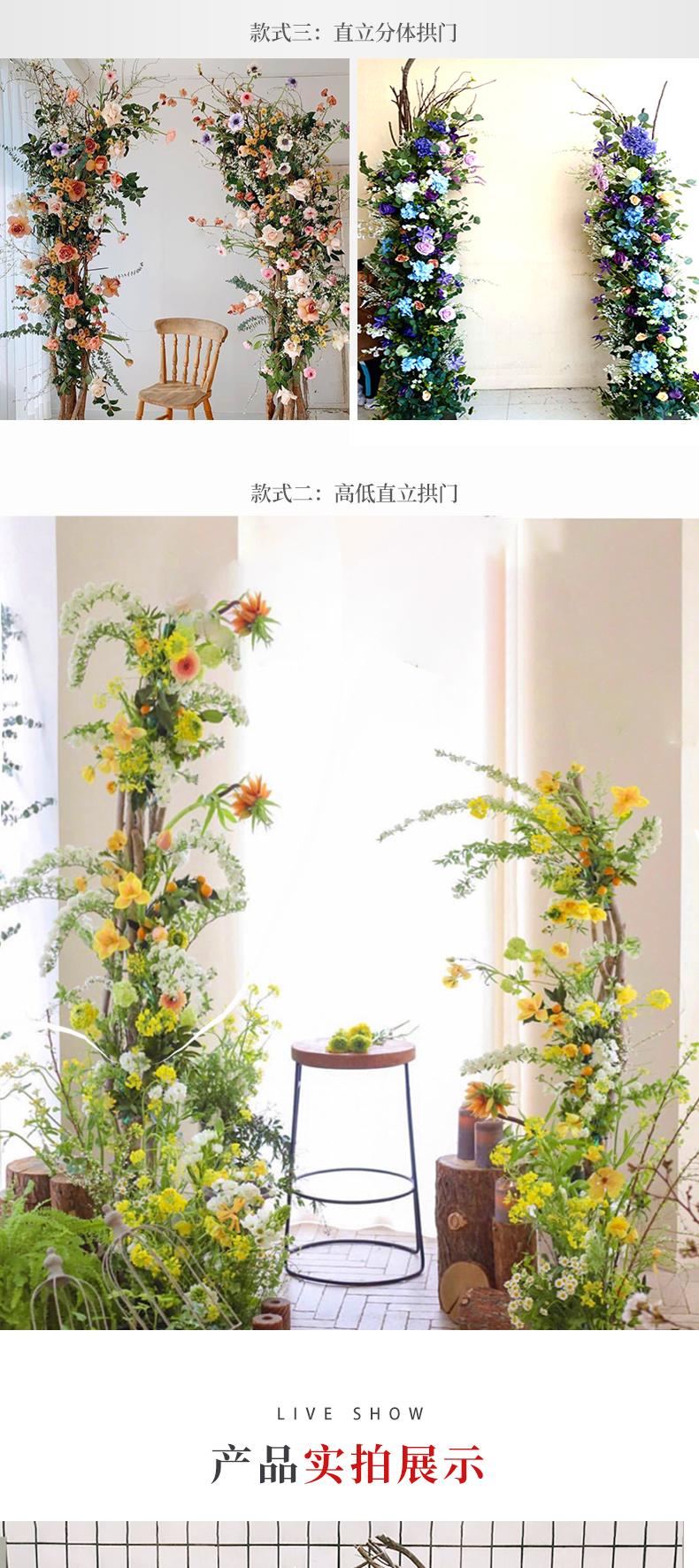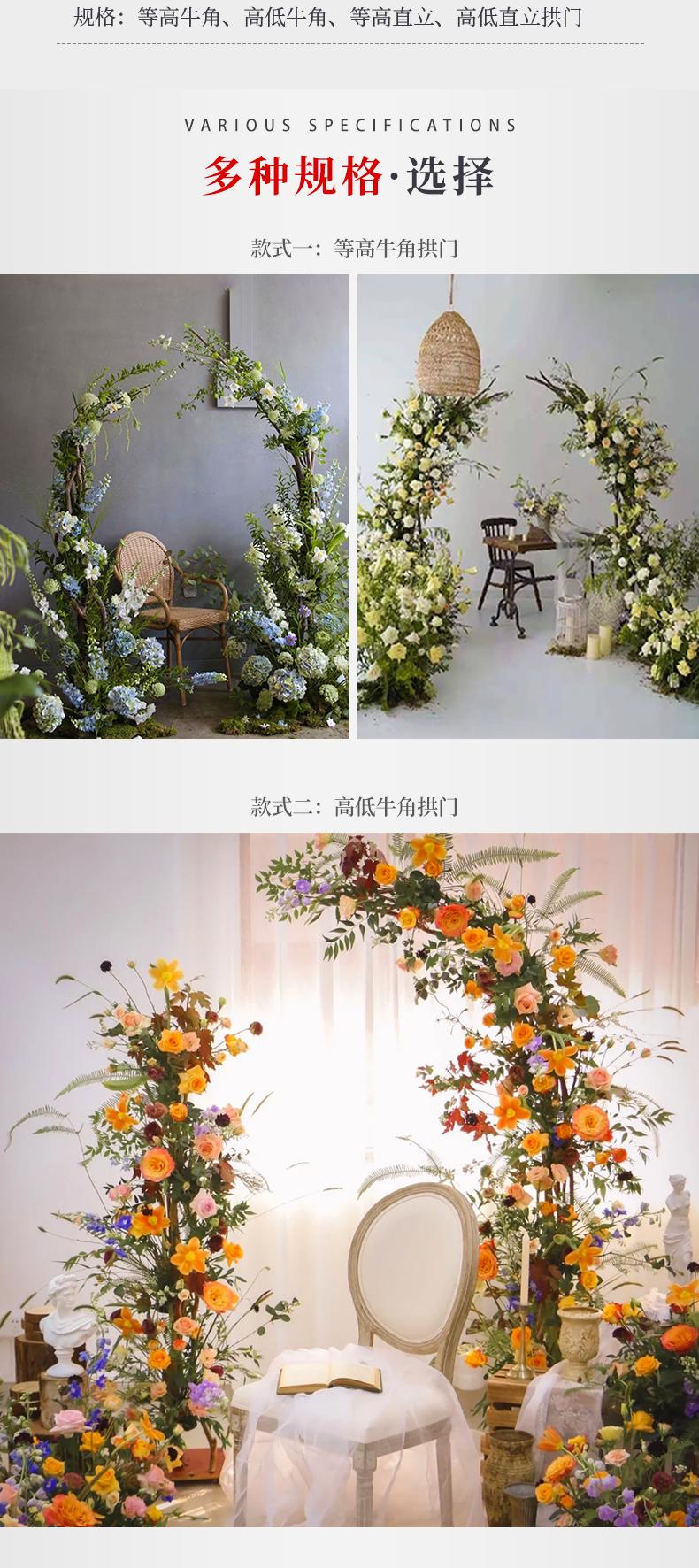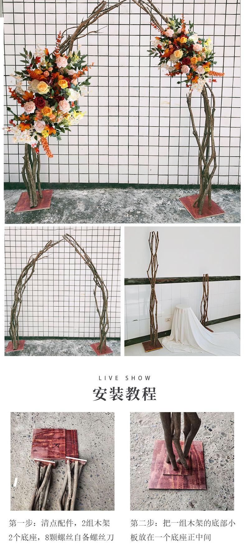 Venta al por mayor, apertura de boda, arco de cuerno de media luna dividido, decoración Mori, soporte de flores para boda, arco floral, puerta de flores de madera maciza