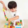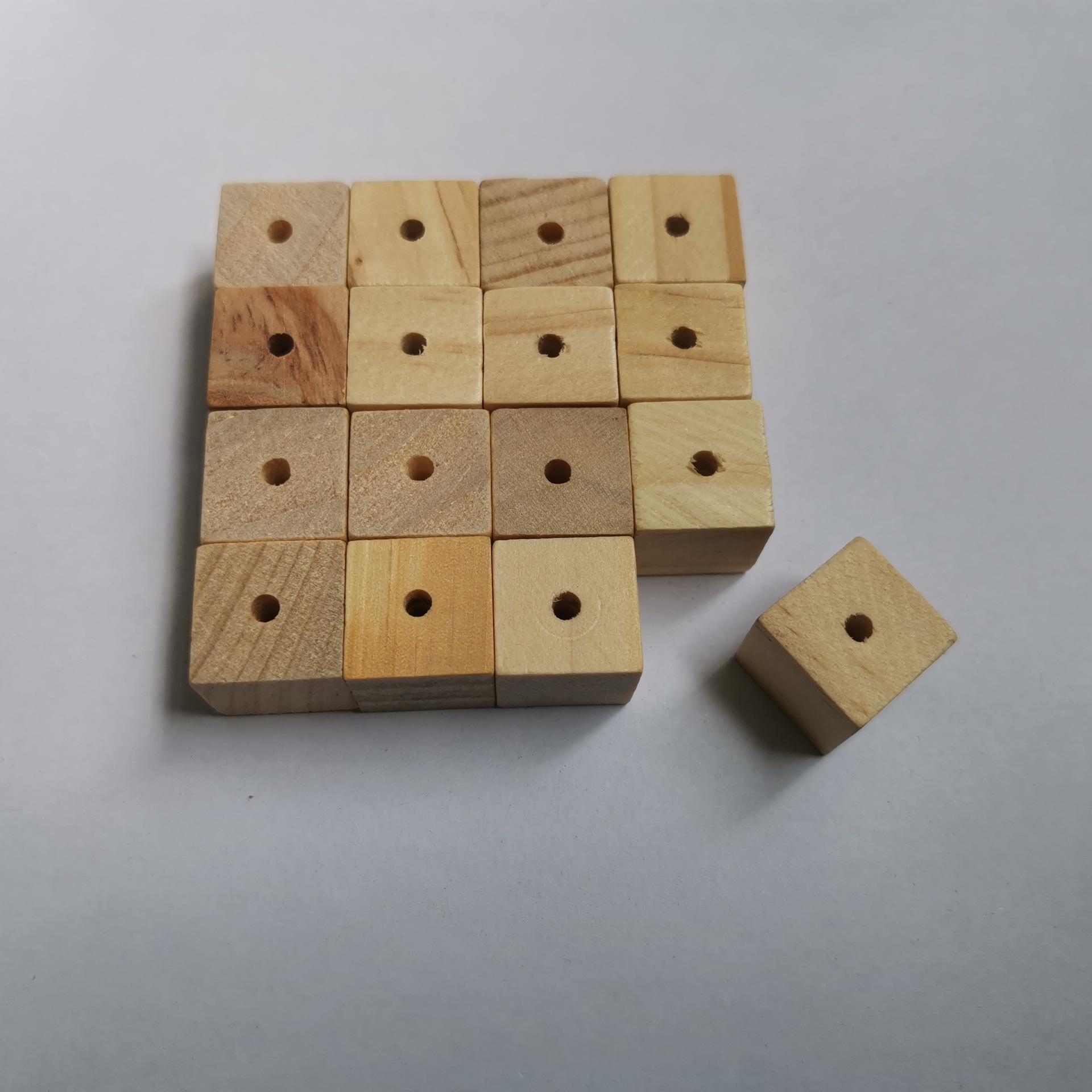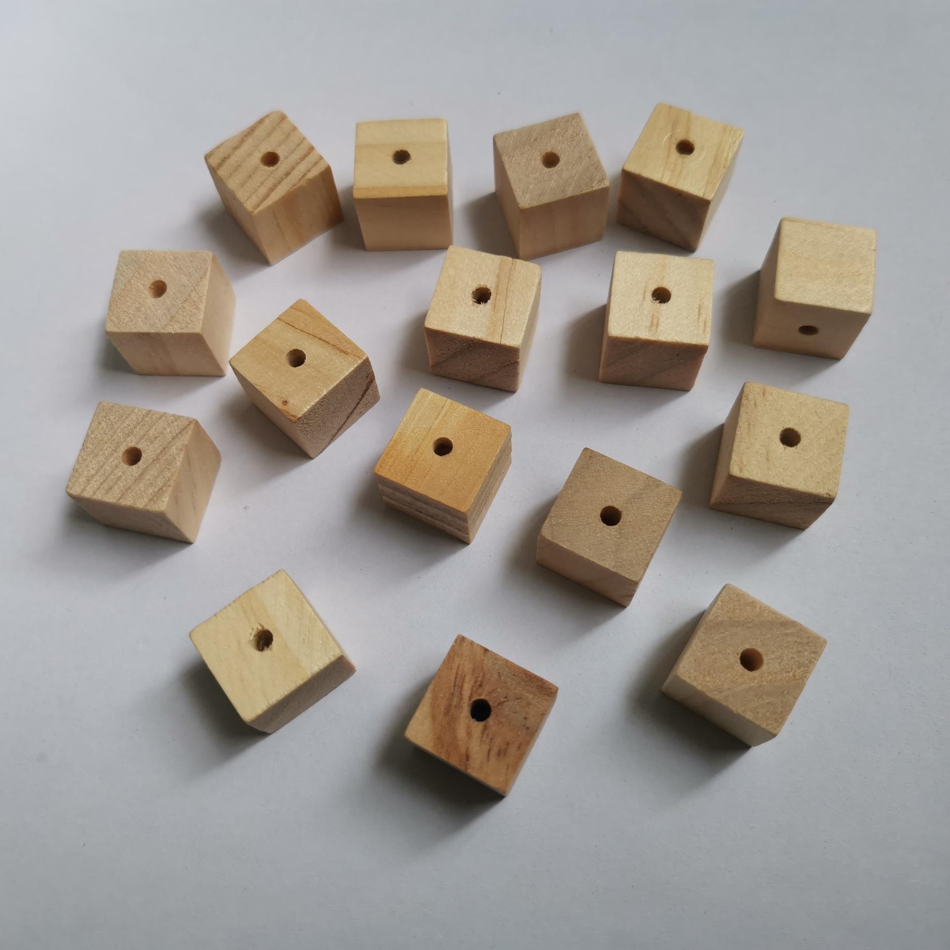 Bloques de construcción de madera cuadrados para niños, hechos a mano, con grafiti, cuentas perforadas y letras impresas en color.