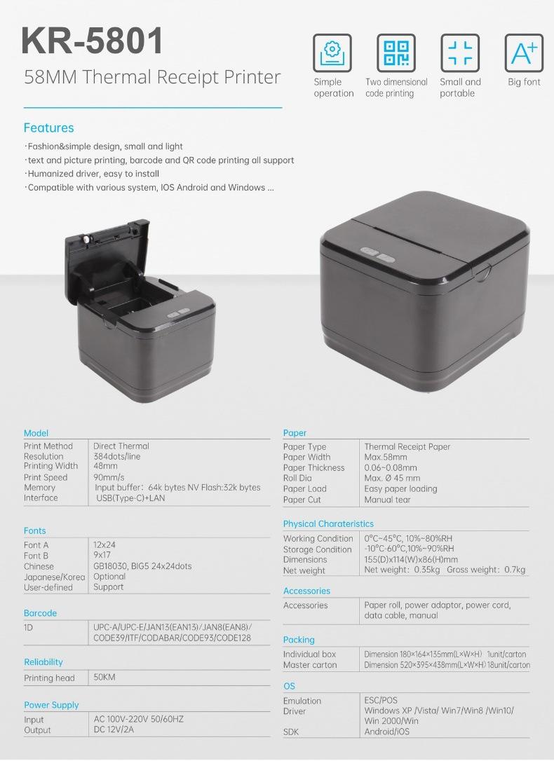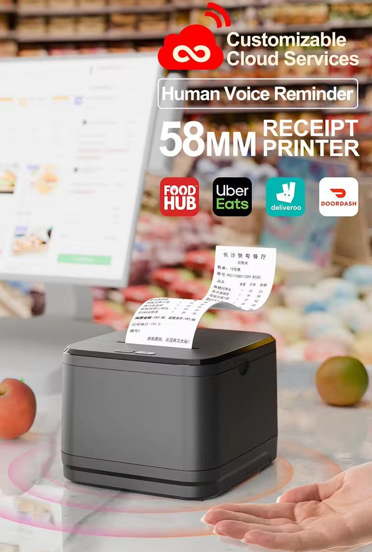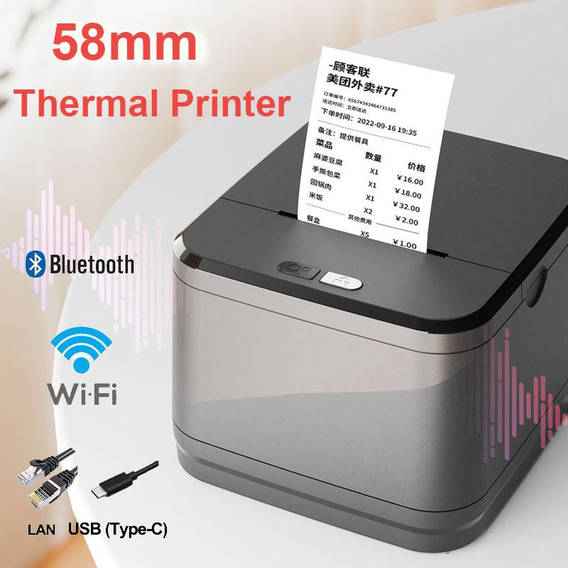 Nueva impresora térmica de escritorio de 58 recibos pequeños con WIFI y Bluetooth para cajero de supermercado, impresora de recibos para llevar