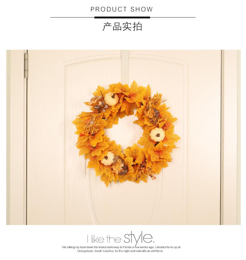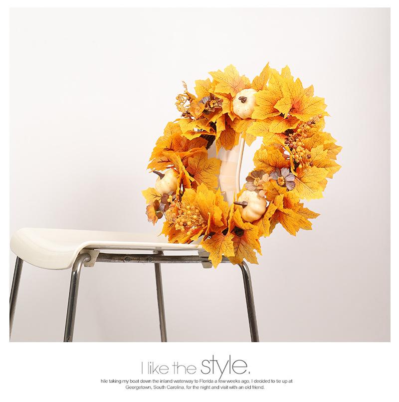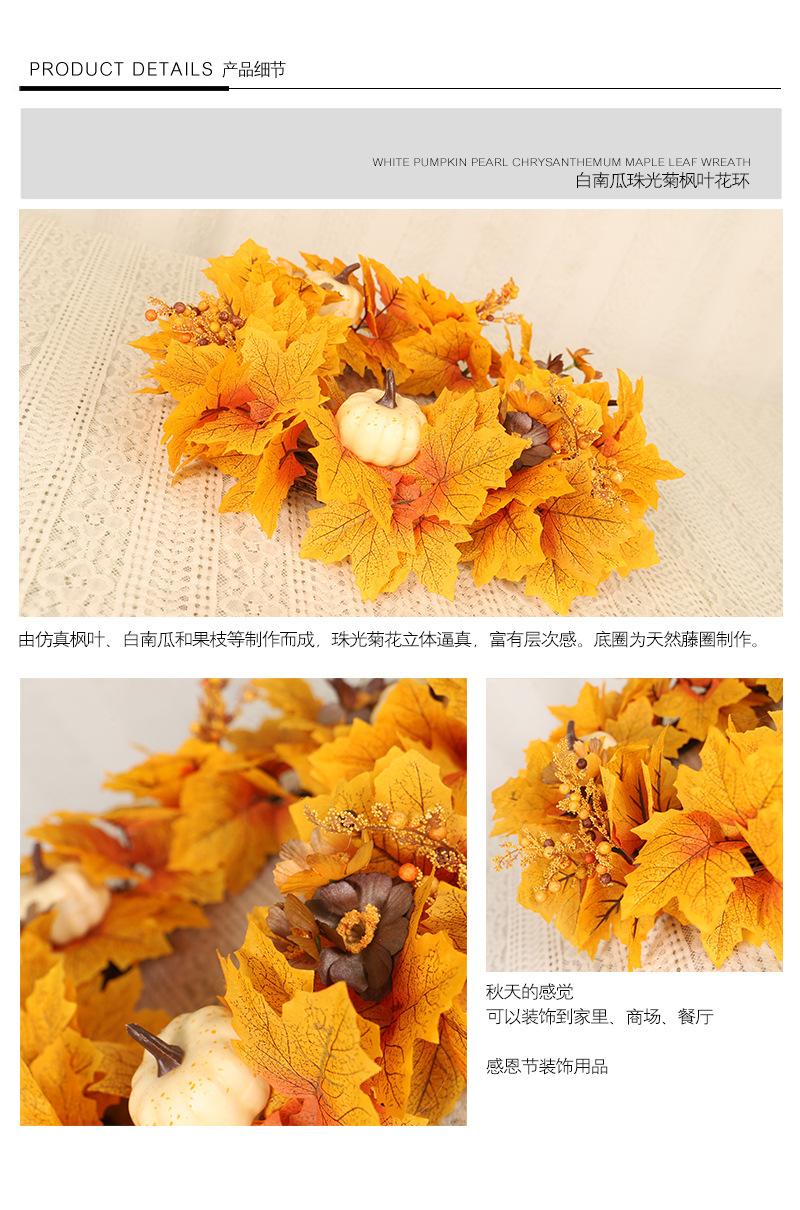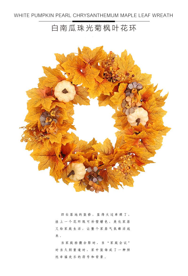 Corona de hojas de arce y crisantemo perlado de calabaza blanca Hongyu, decoración de ratán para Halloween y Acción de Gracias en Amazon.