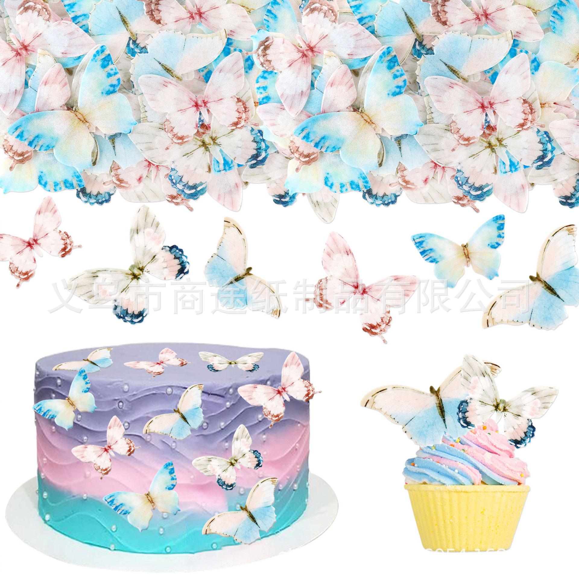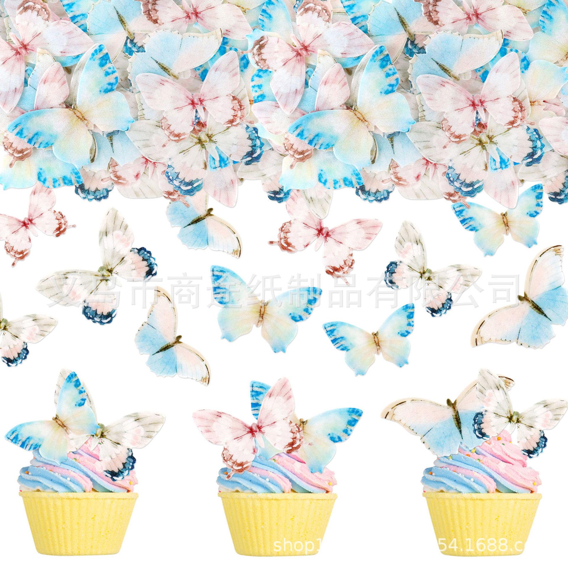 Decoración de mariposa de papel de arroz comestible. Se pueden personalizar otros patrones y estilos festivos (servicio de atención al cliente de consulta de personalización).
