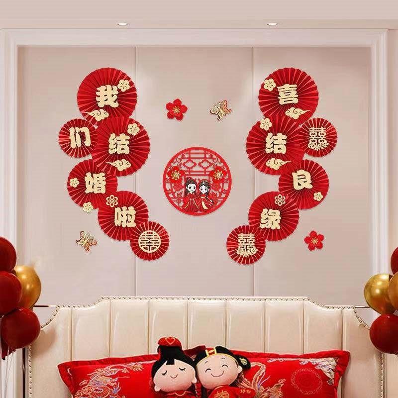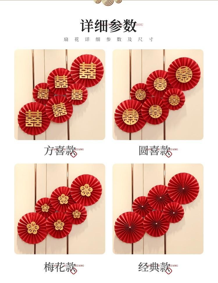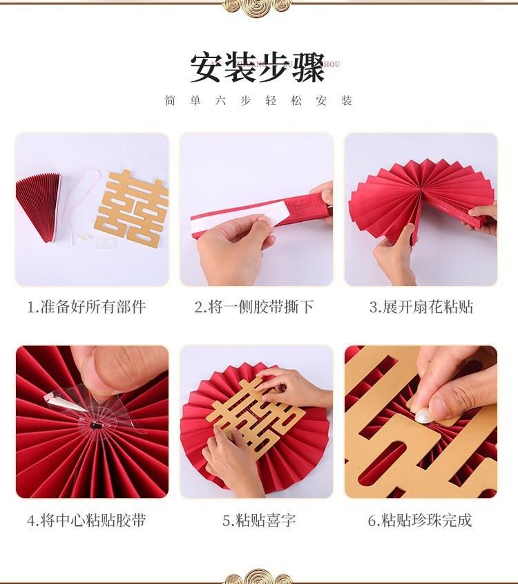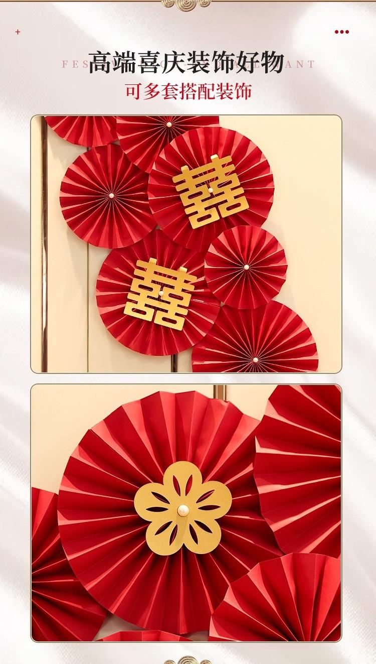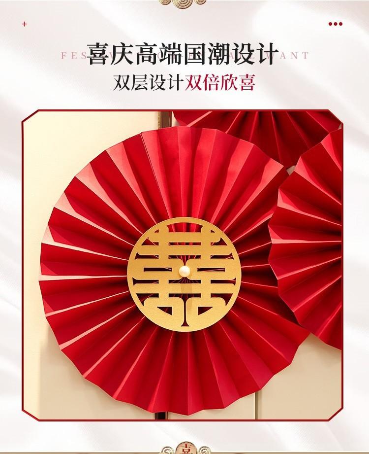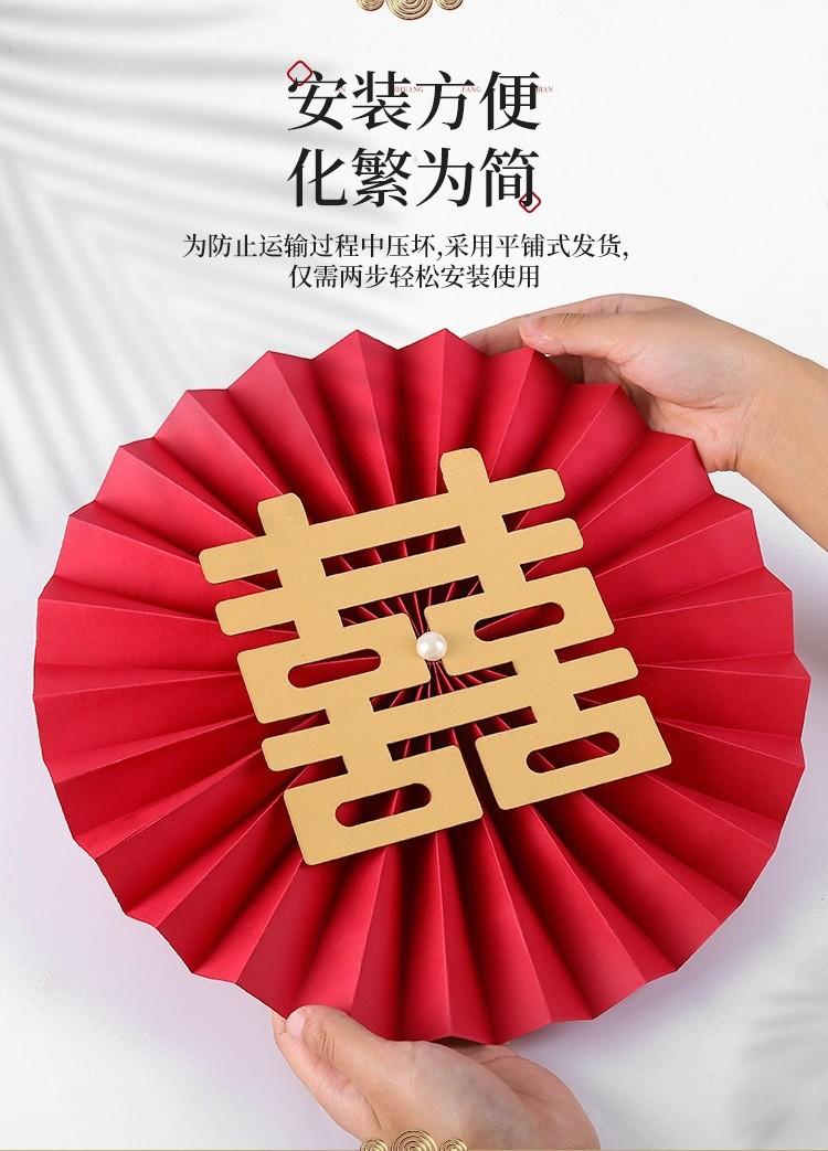 Decoración de Flor Abanico Origami para Boda Suministros para Arreglo de Pared de Fondo para Habitación de Boda Estilo Chino Carácter Doble Felicidad Set de Abanico Plegable Perla Festiva