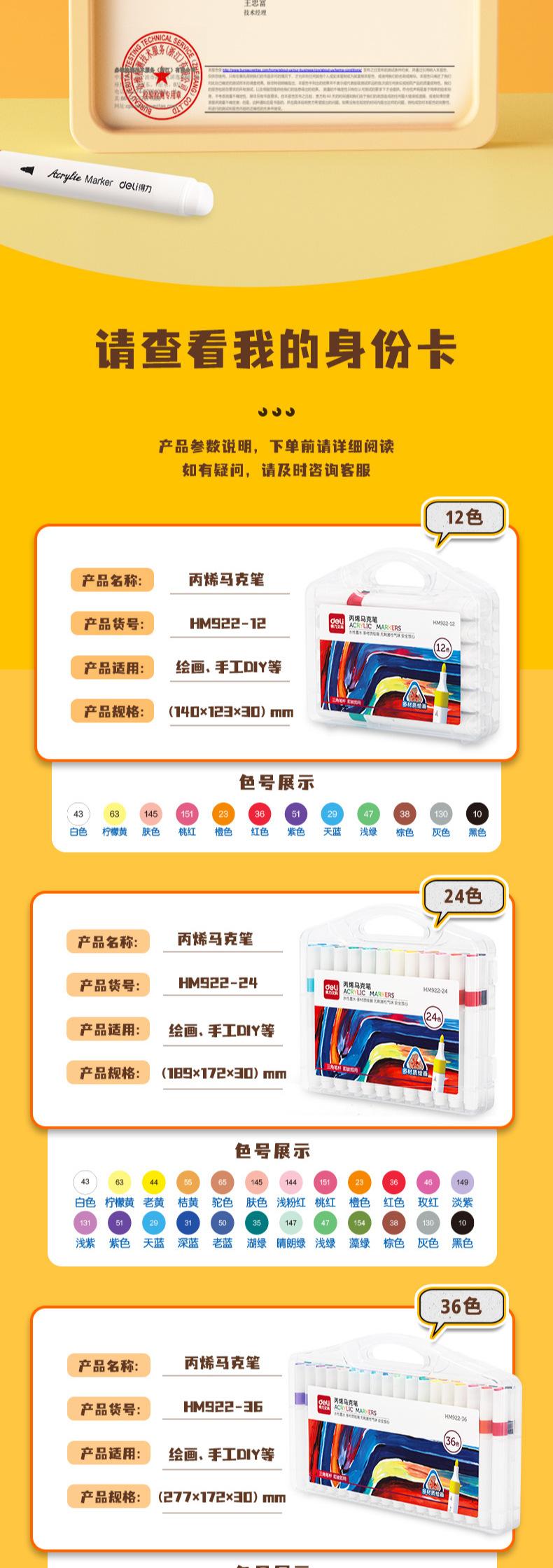 Deli hm922-12 triangular rod acrylic marker pen (mixed), Deli hm922-24 triangular rod acrylic marker pen (mixe...
