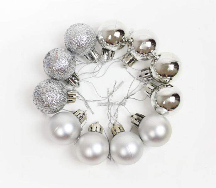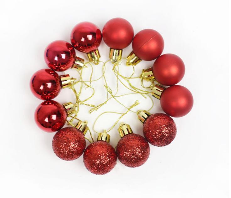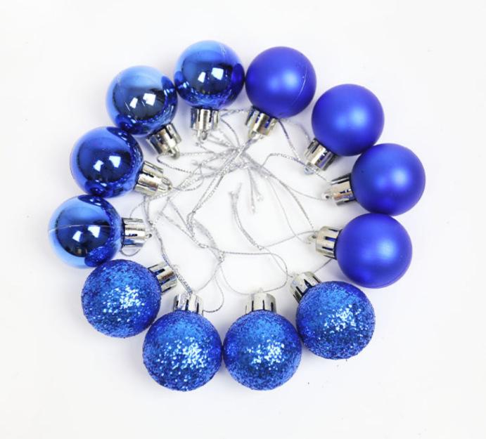 Diámetro 2.5 cm, bolas de Navidad PS galvanizadas, 12 piezas/paquete, 500 paquetes por caja