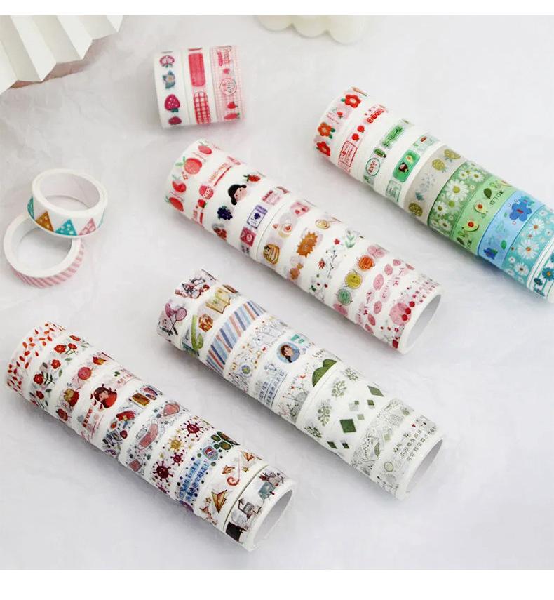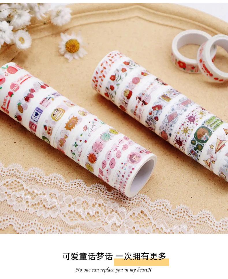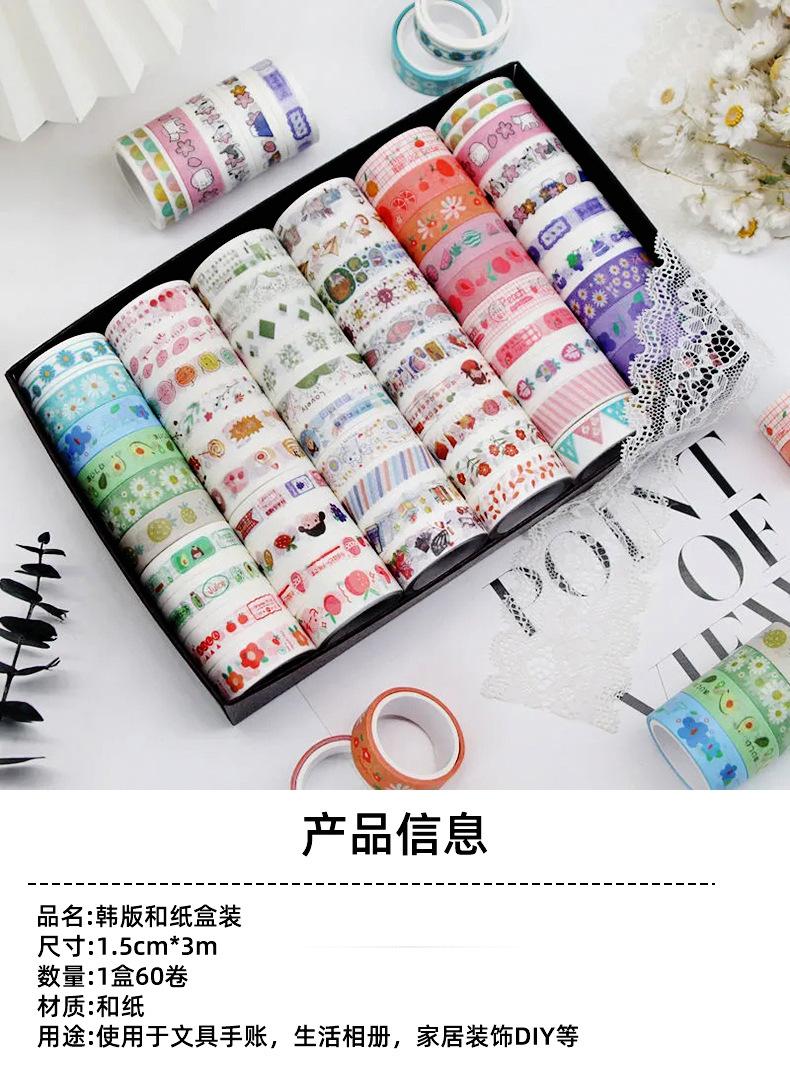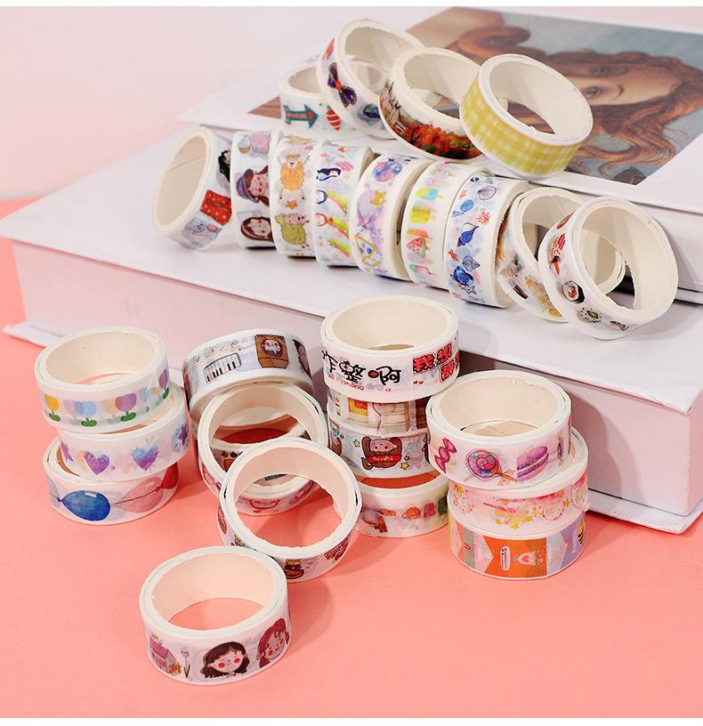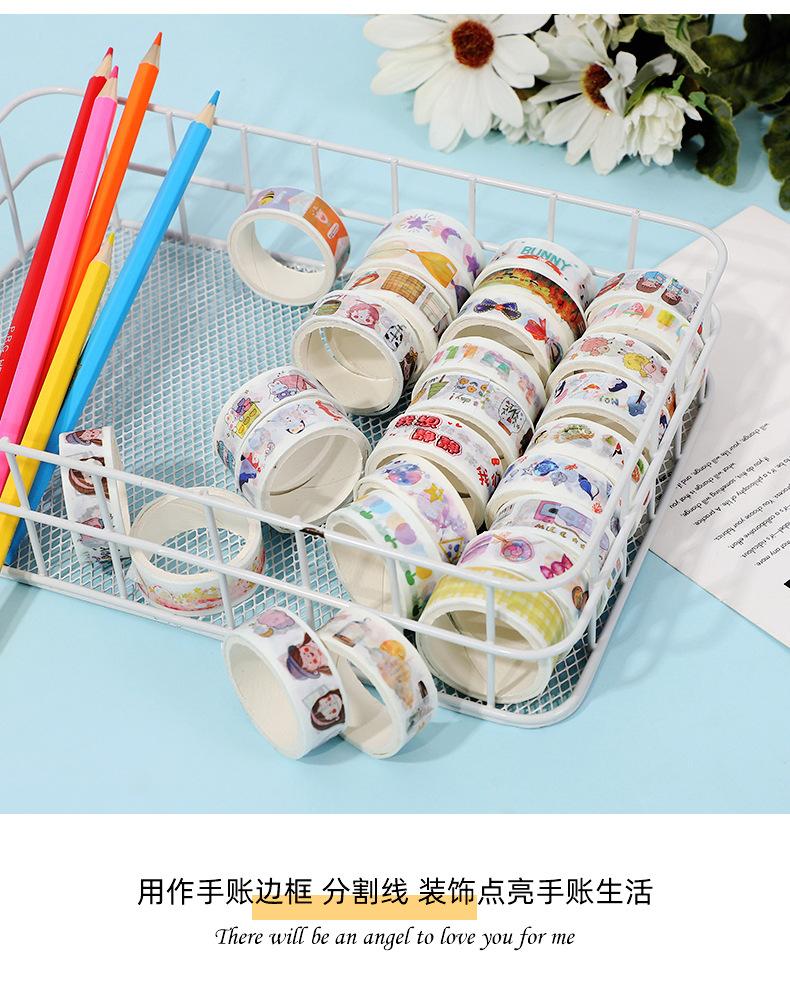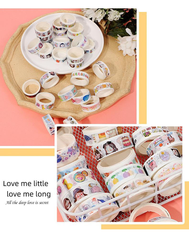 Conjunto de cinta de manual y cinta de papel con personajes antiguos, caja de regalo con patrón de dibujos animados para principiantes, regalo para estudiantes