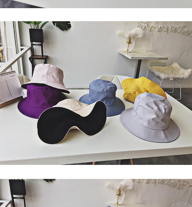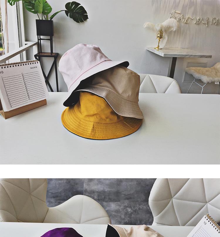 Sombrero de pescador de dos caras de color sólido para mujer, estilo coreano, versátil, japonés, para el sol, artístico, para estudiantes