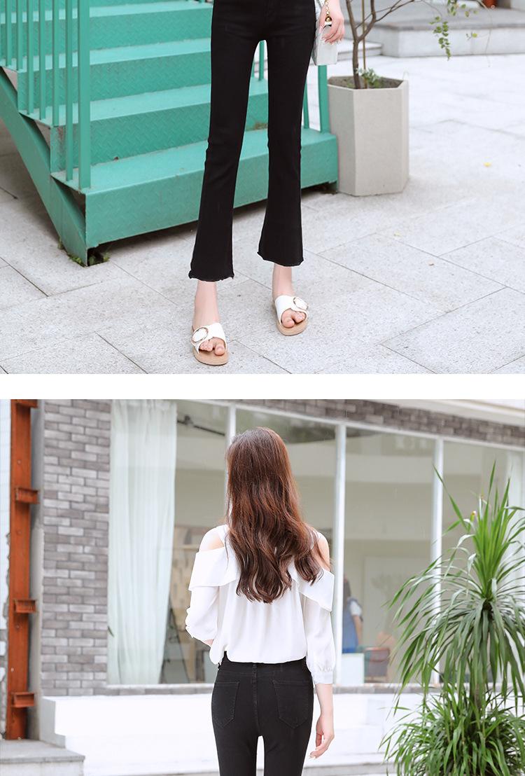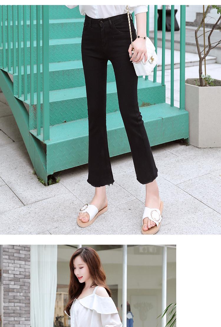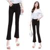 Vaqueros negros deshilachados de cintura alta y micro acampanados para mujer, otoño e invierno 2024, nuevos pantalones cortos elásticos adelgazantes.