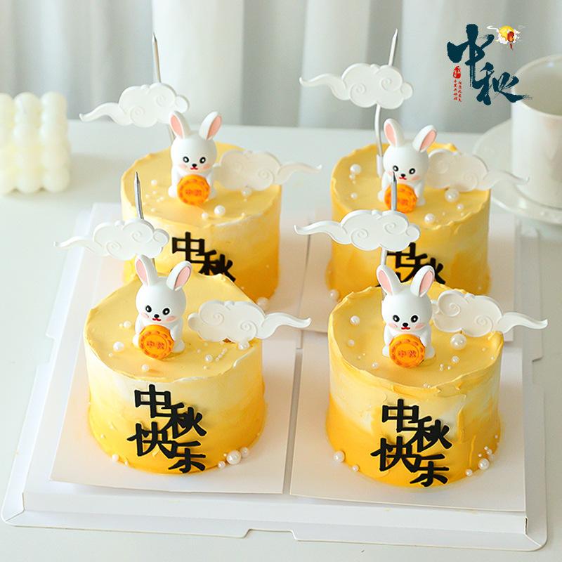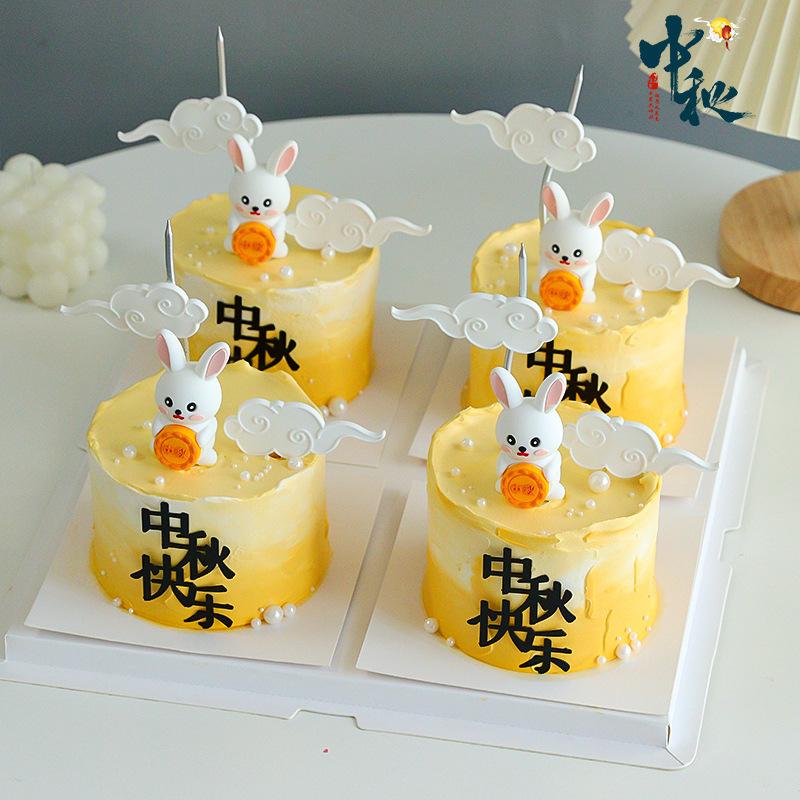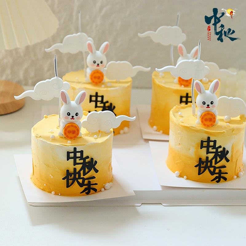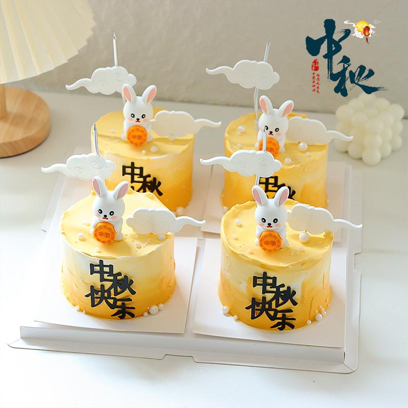 Decoración de pastel del Festival del Medio Otoño 2024, pastel de luna tridimensional, adornos de conejo, conejo de jade, feliz fiesta, Xiangyun, complemento de vestir