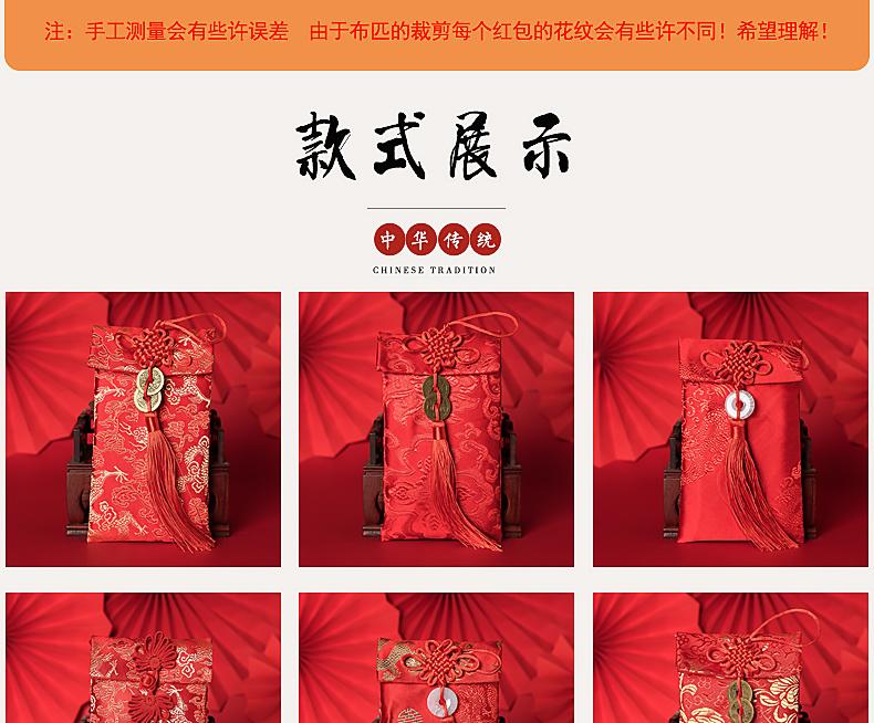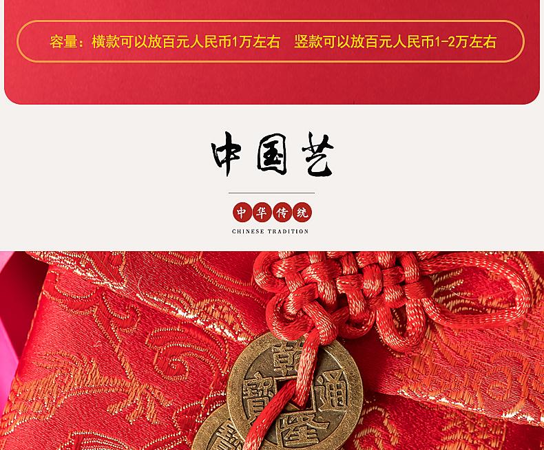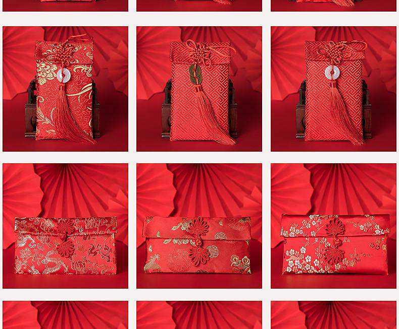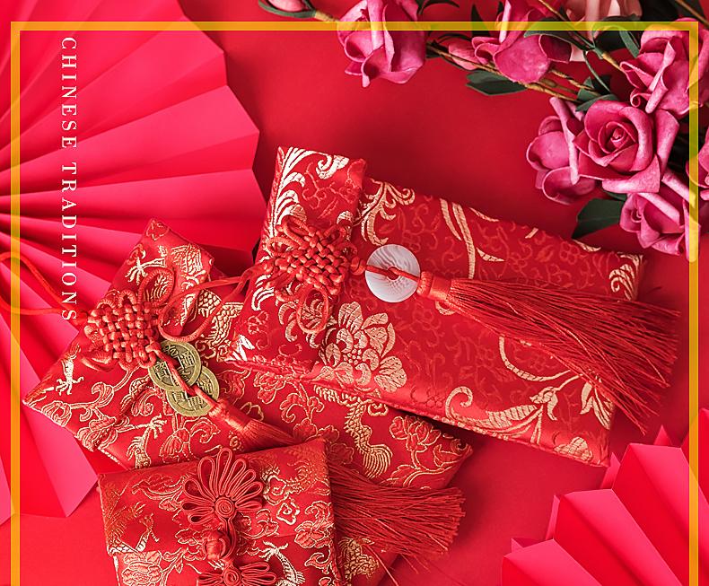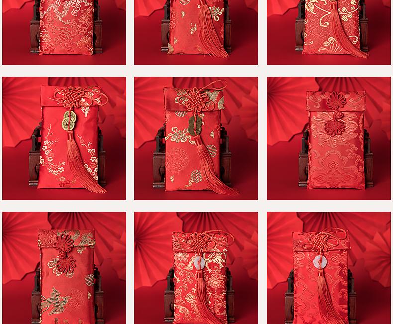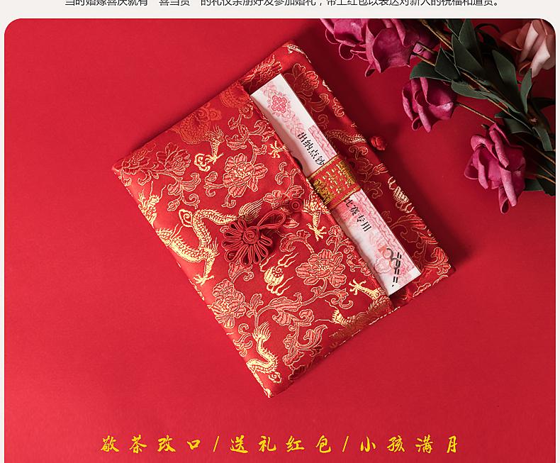 Venta al por mayor de diez mil yuanes de tela grande con sobre rojo de satén para bodas, suministros para bodas y inauguración de la casa en Año Nuevo.