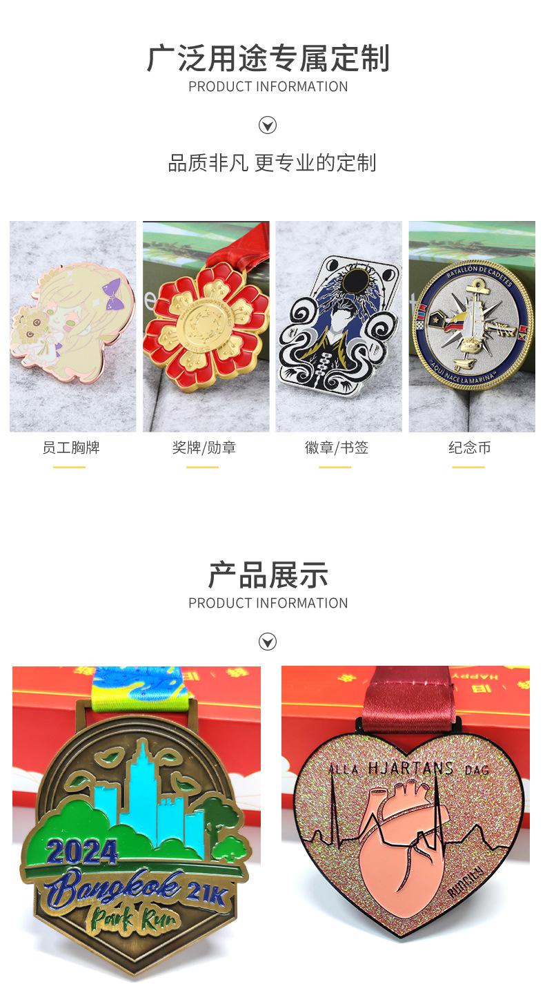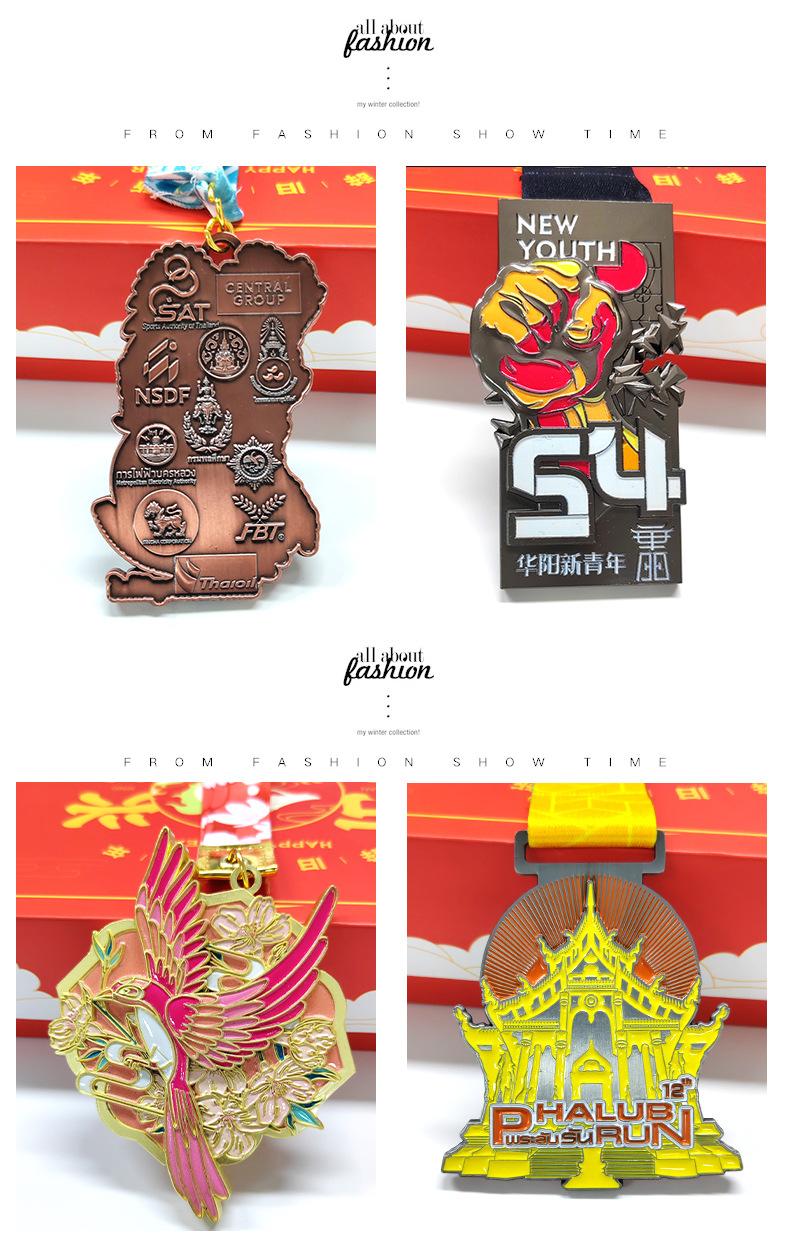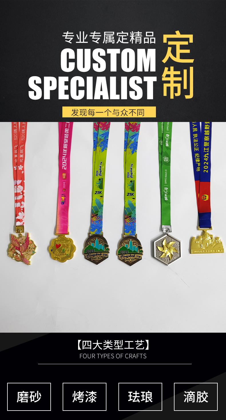 Medalla de metal de aleación de zinc listada para juegos escolares, maratones y eventos. Suministro de fábrica.