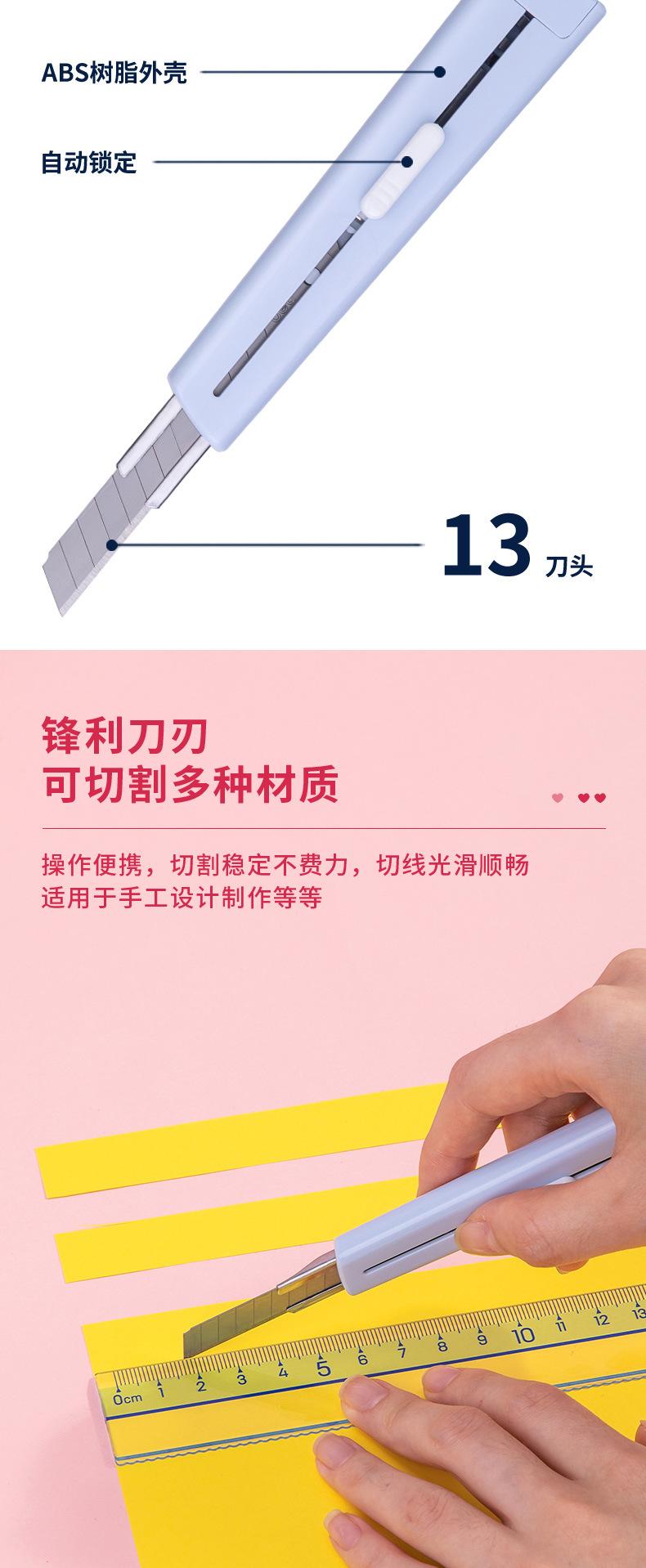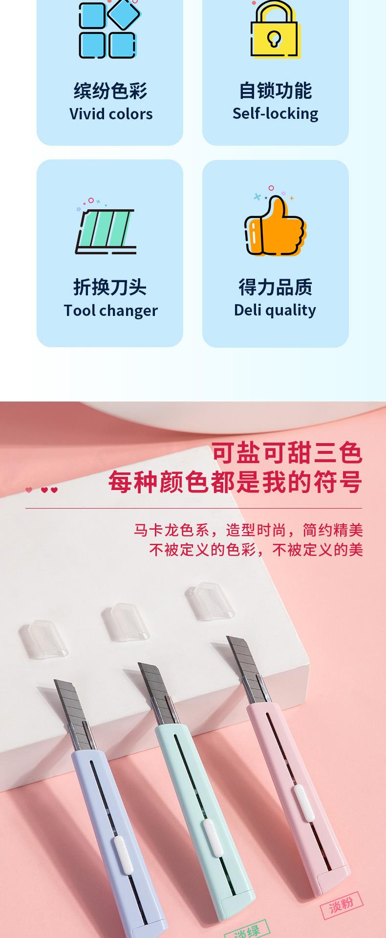 Cuchillo multiusos Deli 2038, color macarrón, con función de bloqueo automático, cortador de papel/cuchillo pequeño