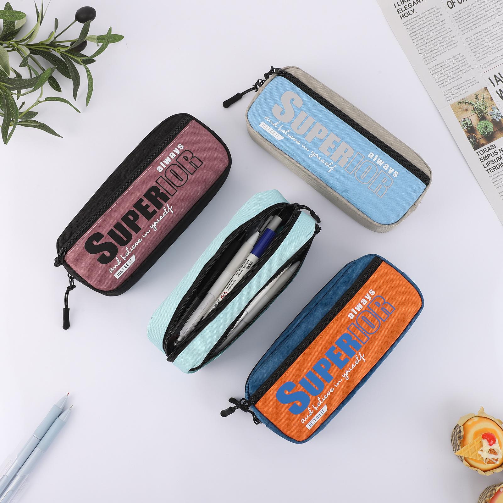 Estuche de lápices de gran capacidad para estudiantes, sencillo, de alto valor, de tela Oxford, con cremallera, multifuncional