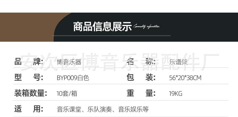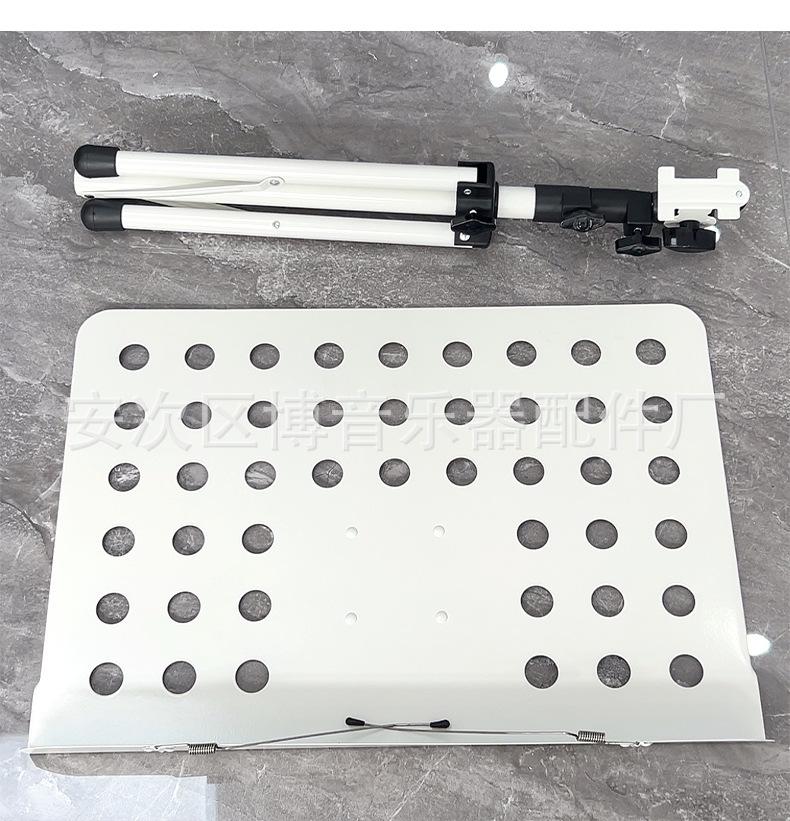 Atril plegable blanco de tres secciones para partituras, guitarra, violín, guzheng