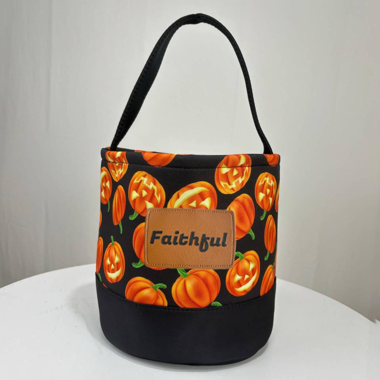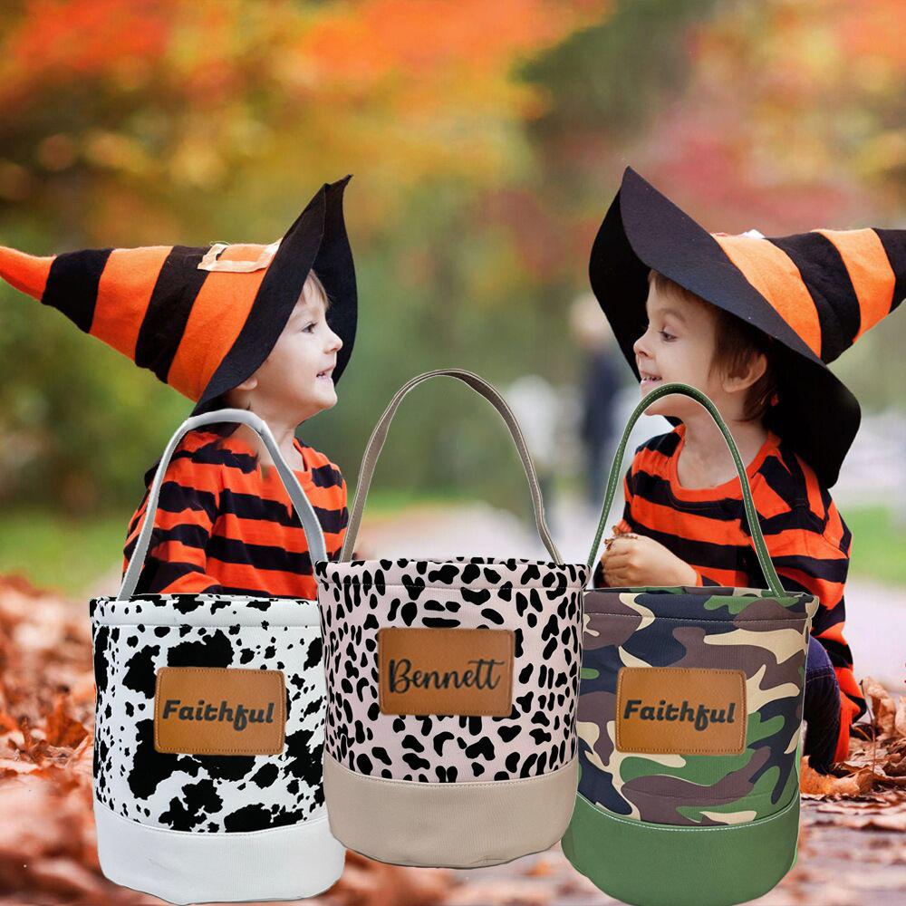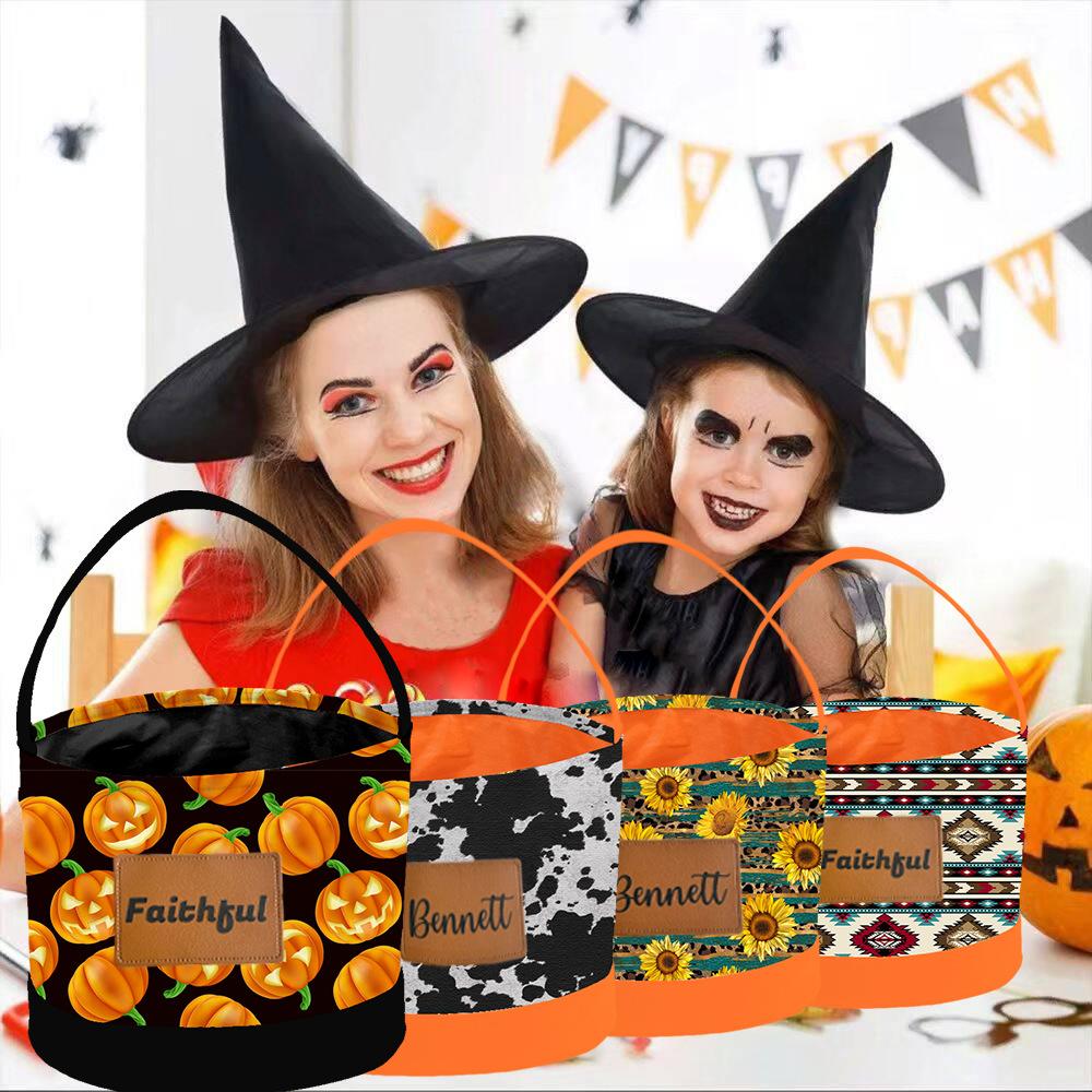 One Piece Personalizado Transfronterizo Nueva Decoración de Halloween Suministros para Fiesta Bolsa de Barril Estampada Lona Cesta de Dulces Halloween