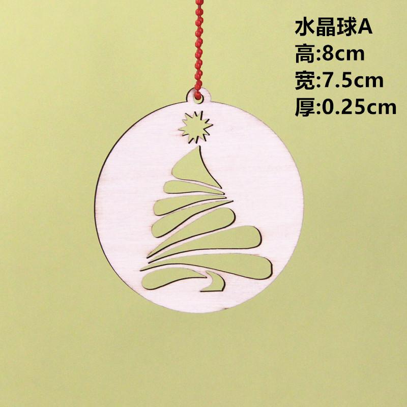 Colgante de bola de cristal navideña transfronteriza, placa de madera redonda con virutas de madera, adorno hueco para árbol de Navidad