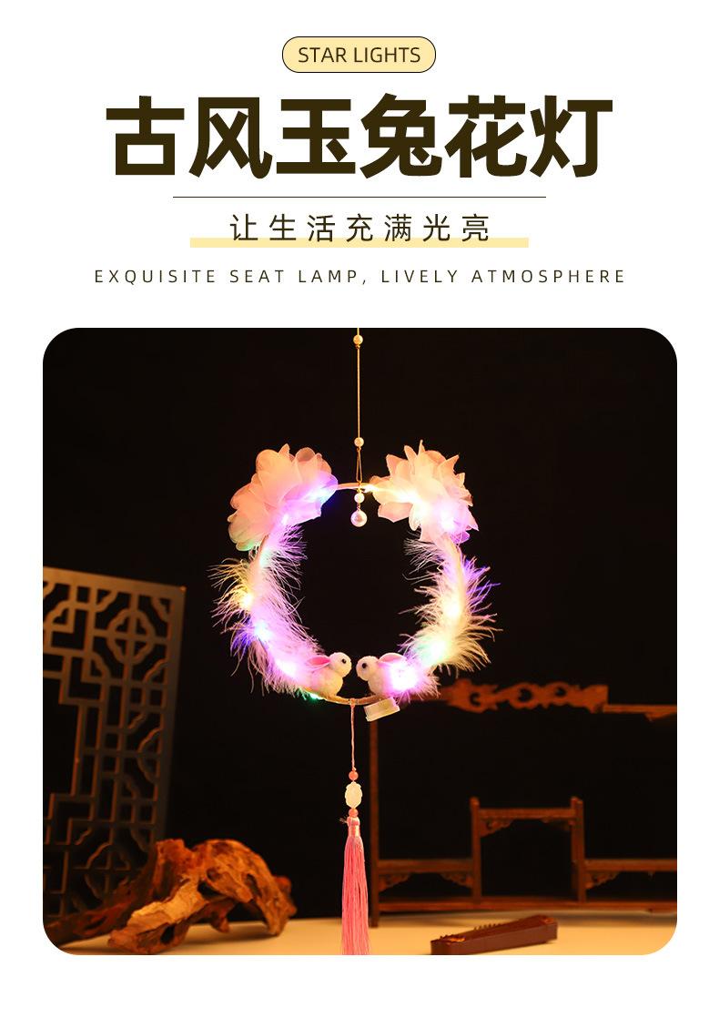 Linterna de conejo de jade del Festival del Medio Otoño, linterna hueca portátil del año 2023, puesto en el mercado nocturno, Día del Niño, pequeño regalo al por mayor