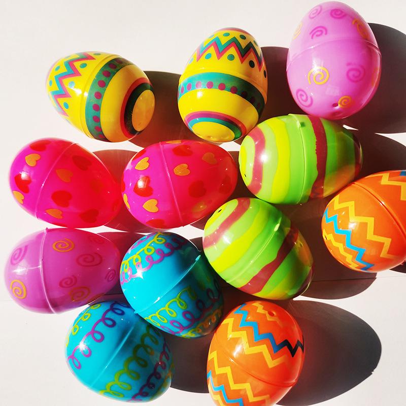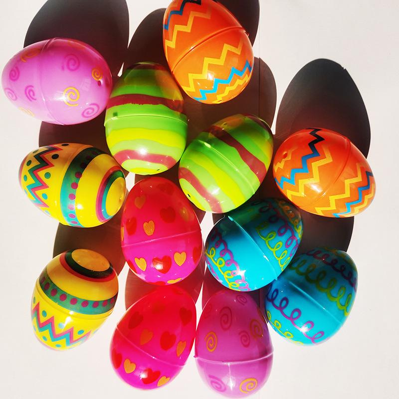 Huevo de Pascua de 6 cm con impresión, apertura de huevo retorcido, flor de plástico, cáscara de huevo, juguete de caramelo, venta al por mayor transfronteriza