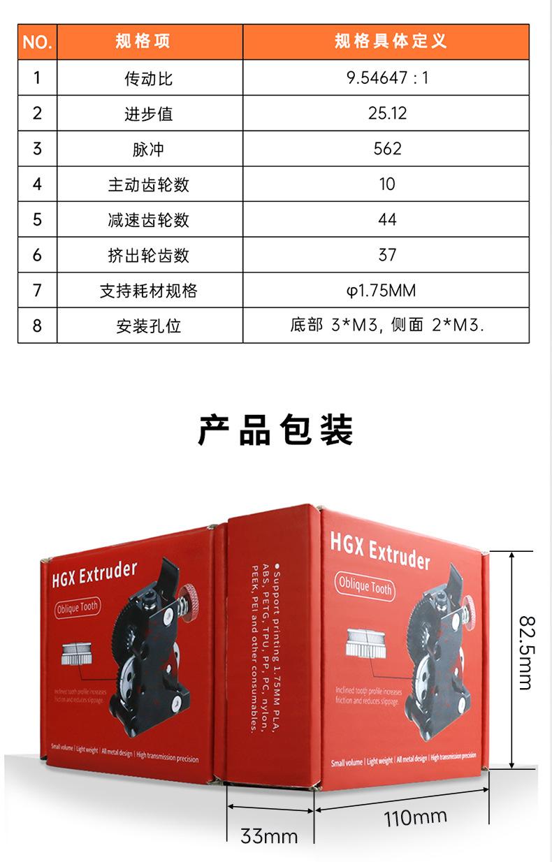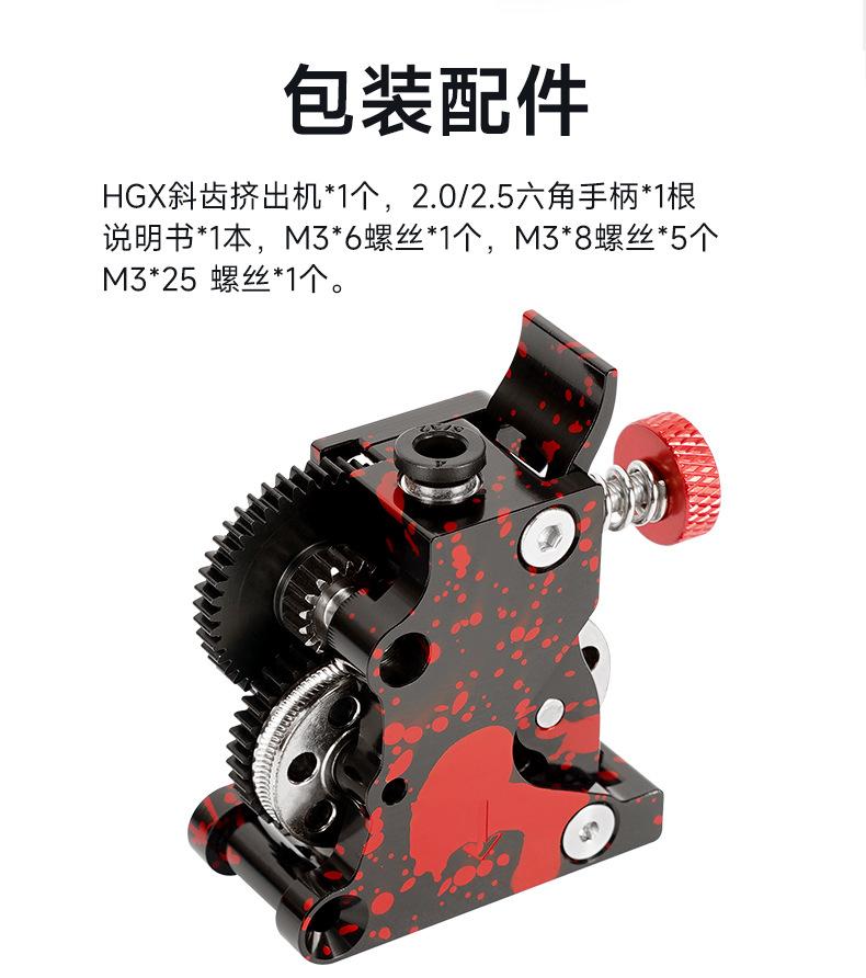 B02839-HGX helical gear extruder fan color (comes with packaging), B02840-HGX helical extruder-separate gear set