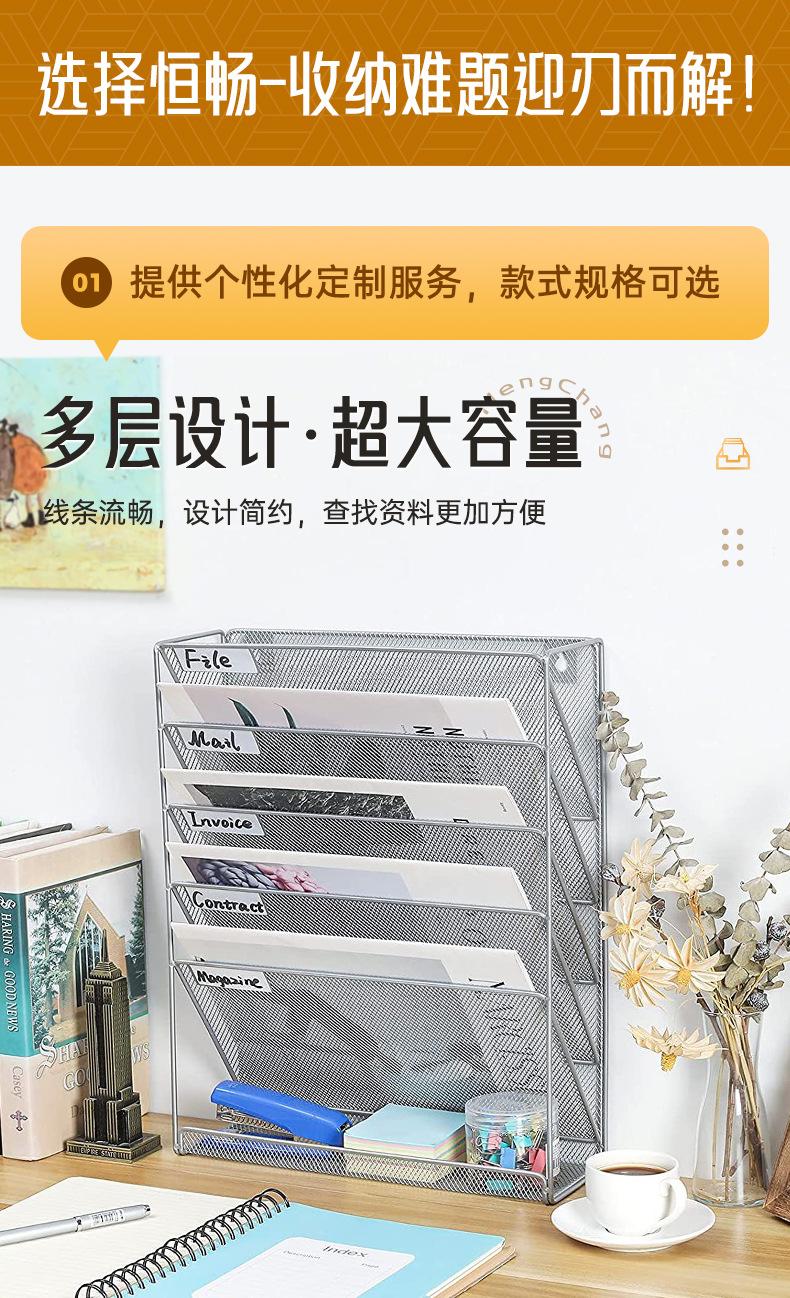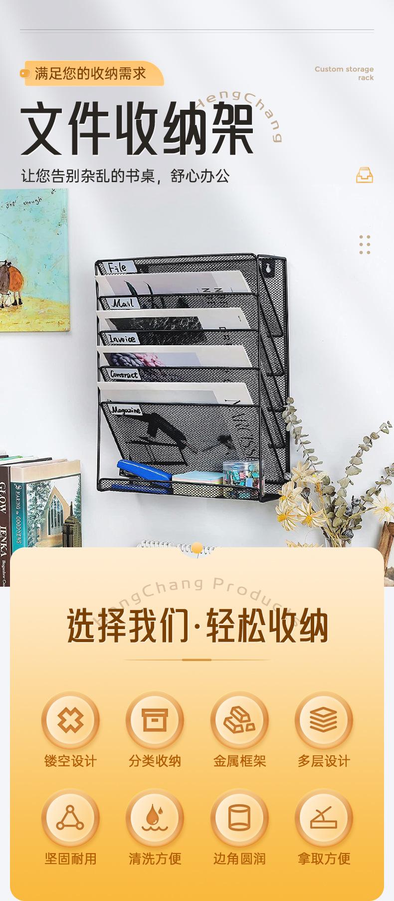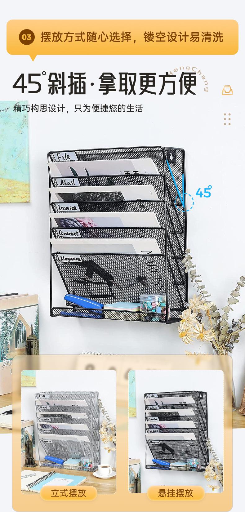 Estante de almacenamiento de archivos de pared con rejilla de hierro forjado, multifuncional, para oficina, revistas y clasificación de archivos.