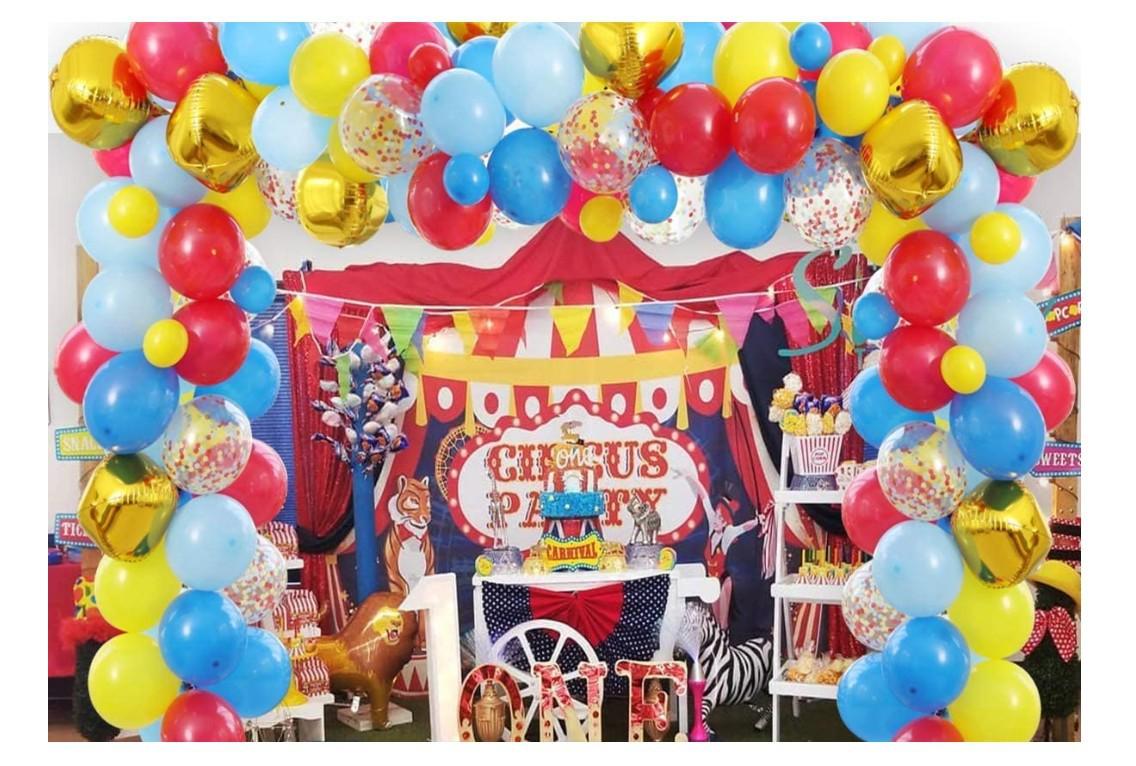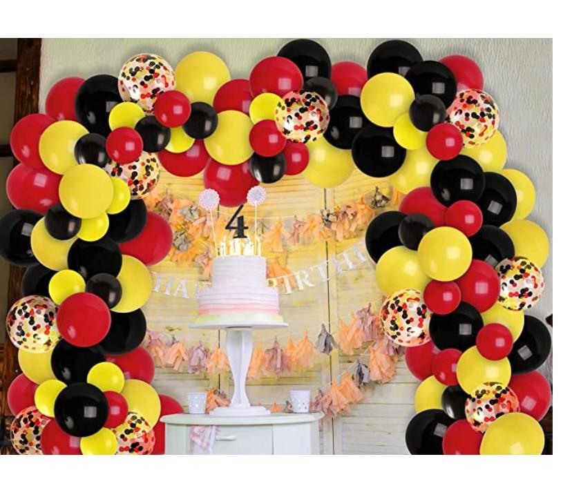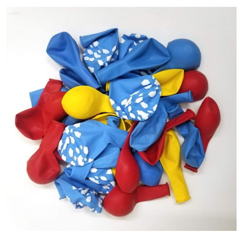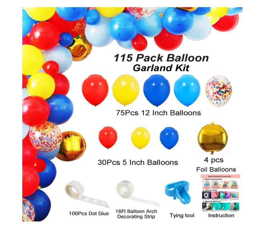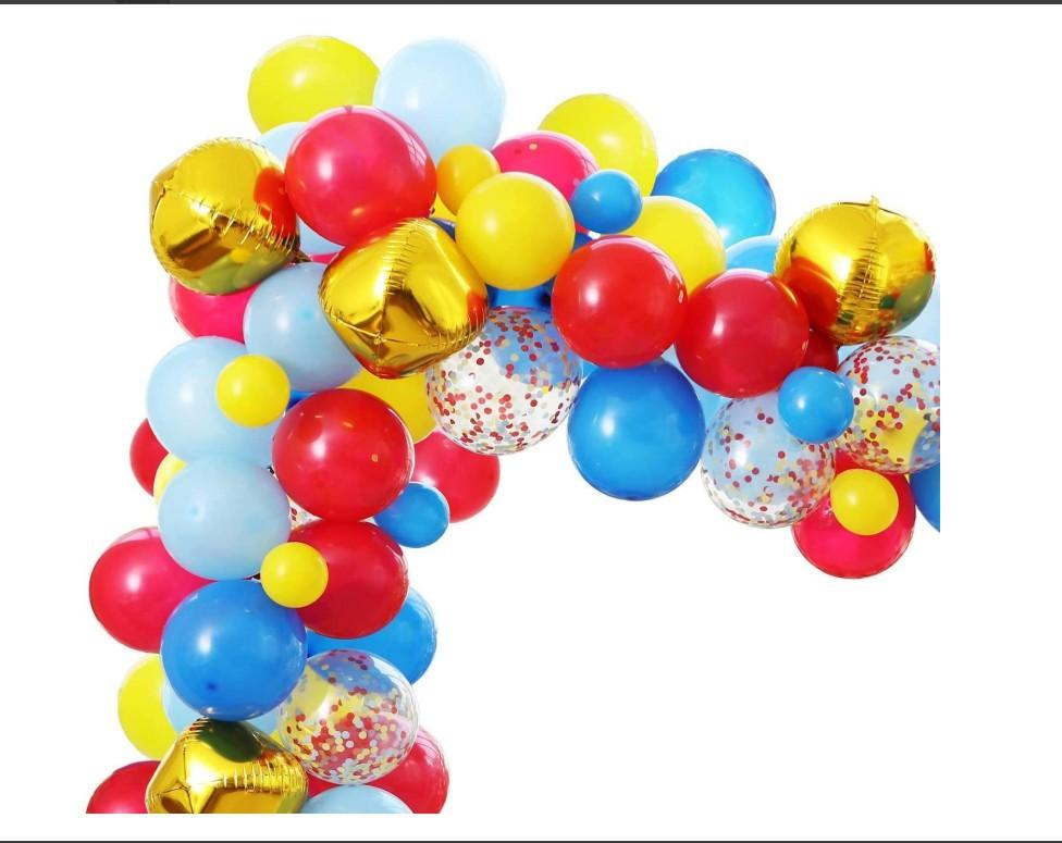 - 10 globos de confeti rojo, azul y amarillo de 12"