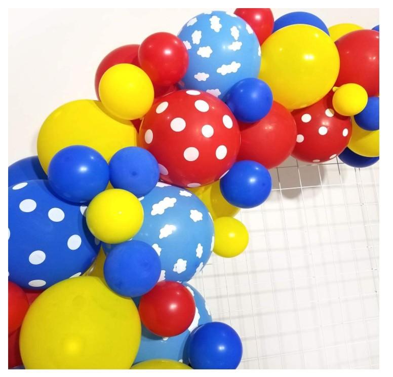 Guirnalda de globos con estampado de nubes, globos de látex amarillos, rojos y azules para fiestas temáticas de Toy Story, suministros de decoración para cumpleaños y baby shower, paquete de 103