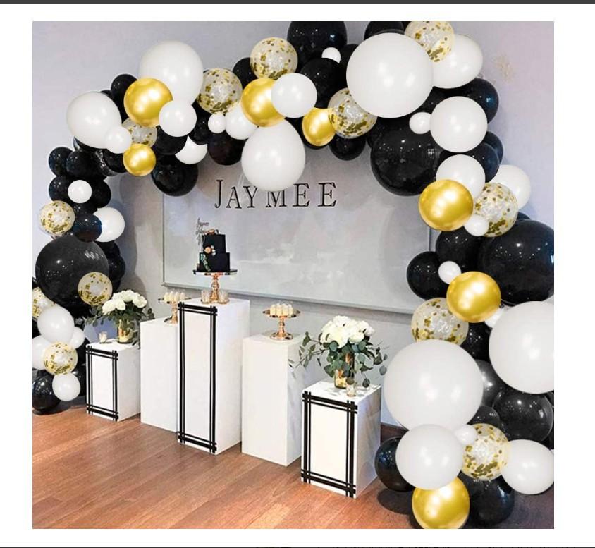 Globos Negros Globos Blancos Globos Metálicos Dorados 136 Piezas - Elegante Kit de Arco de Guirnalda de Globos Blanco y Negro para Boda, Graduación, Compromiso, Cumpleaños y Decoraciones para Fiesta de Picnic. Tamaño del Paquete 4 x 3 x 1.25 pulg Peso del Artículo 349 g