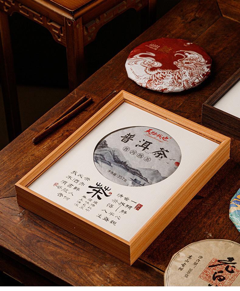 Set de Caja de Regalo de Pastel de Té Pu'er de Marea Nacional de Estilo Chino, Decoración de Pastel de Té de Mesa, Marco de Fotos, Decoraciones de Pared de Escritorio para Sala de Té, Marco de Fotos