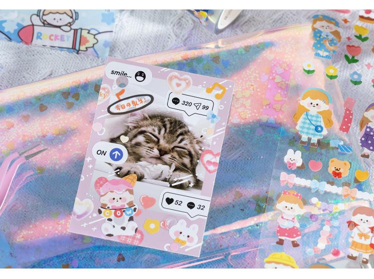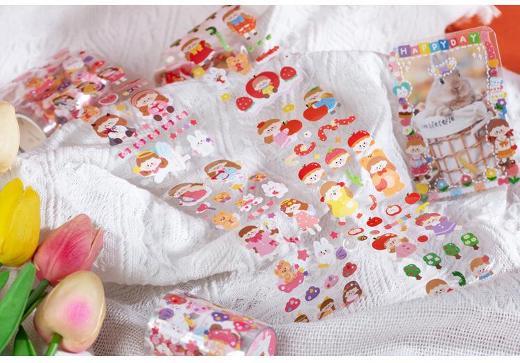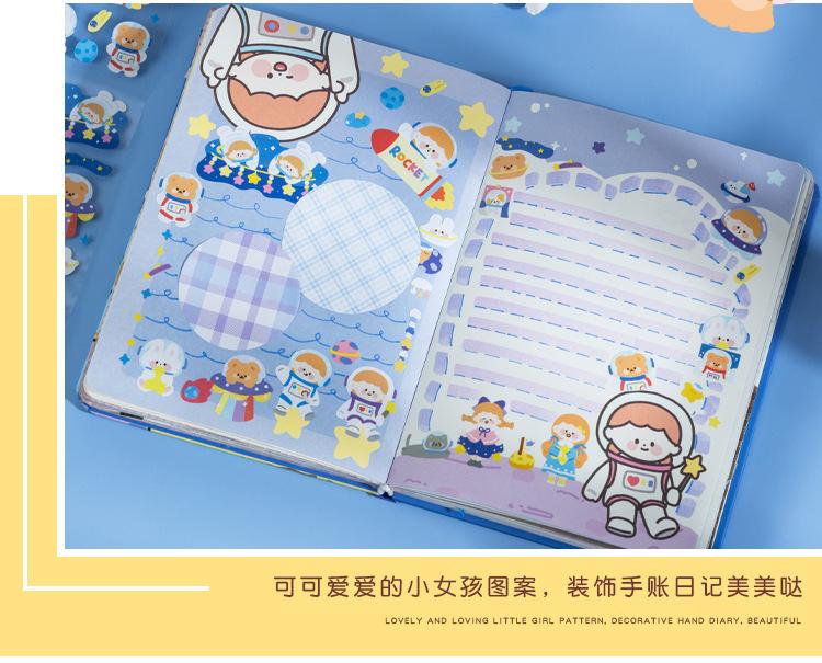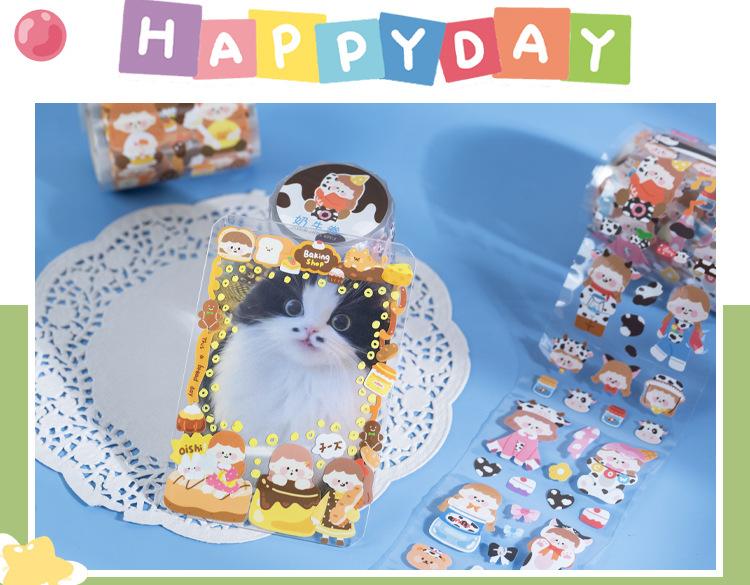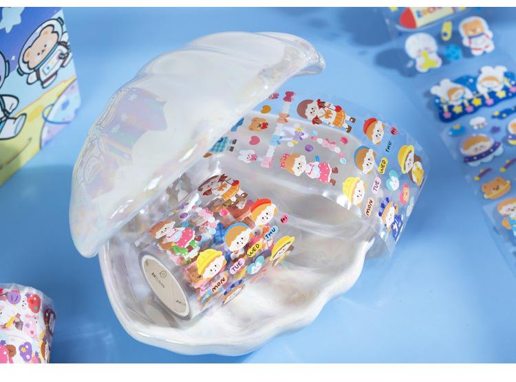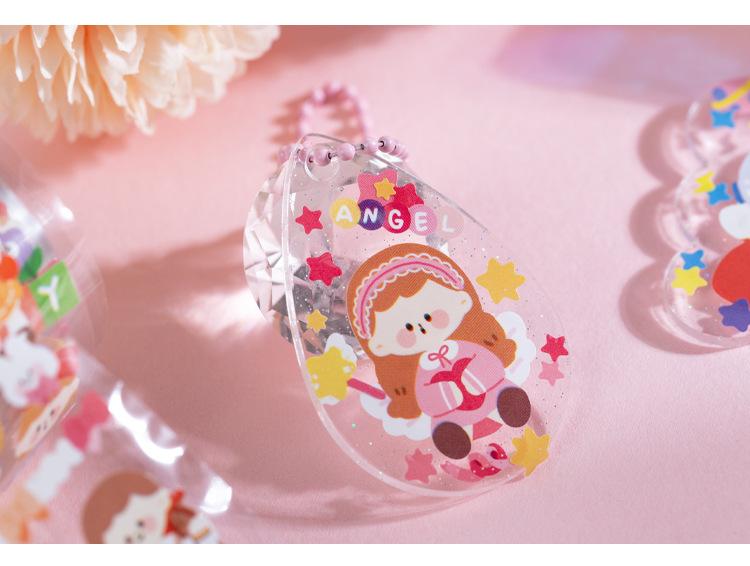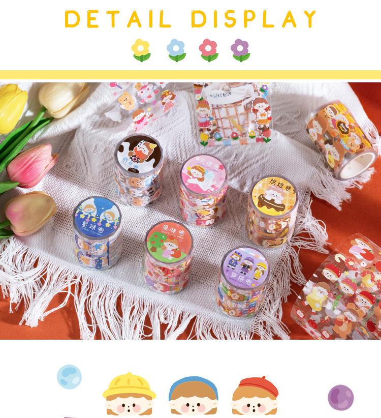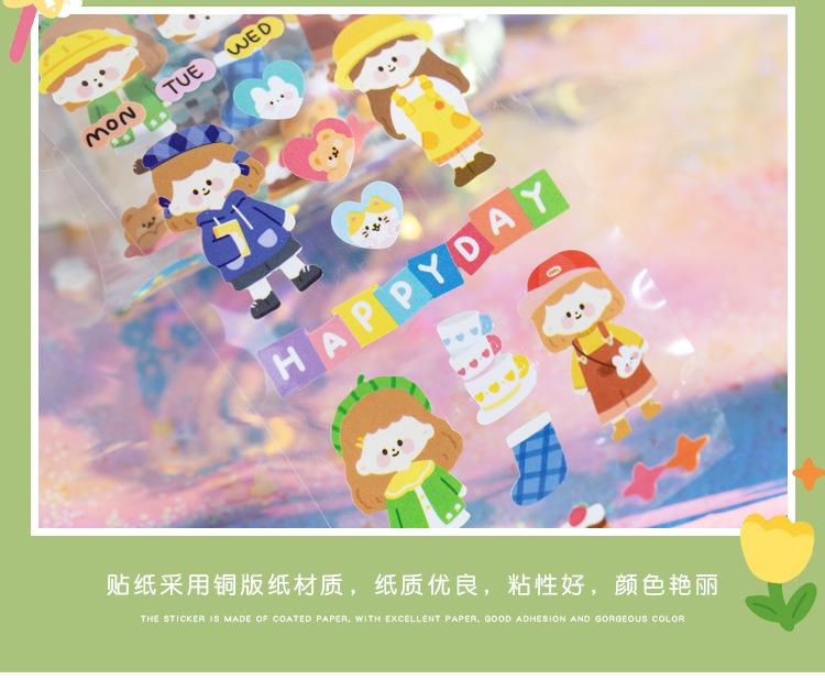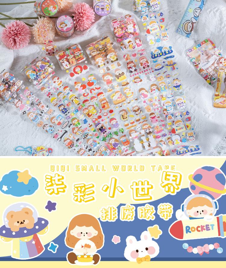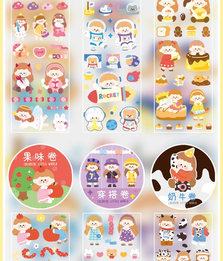 Idioma cinta de desecho inactiva siete colores serie pequeño mundo pintado a mano dibujos animados linda niña pegatinas de decoración para cuenta de mano 6