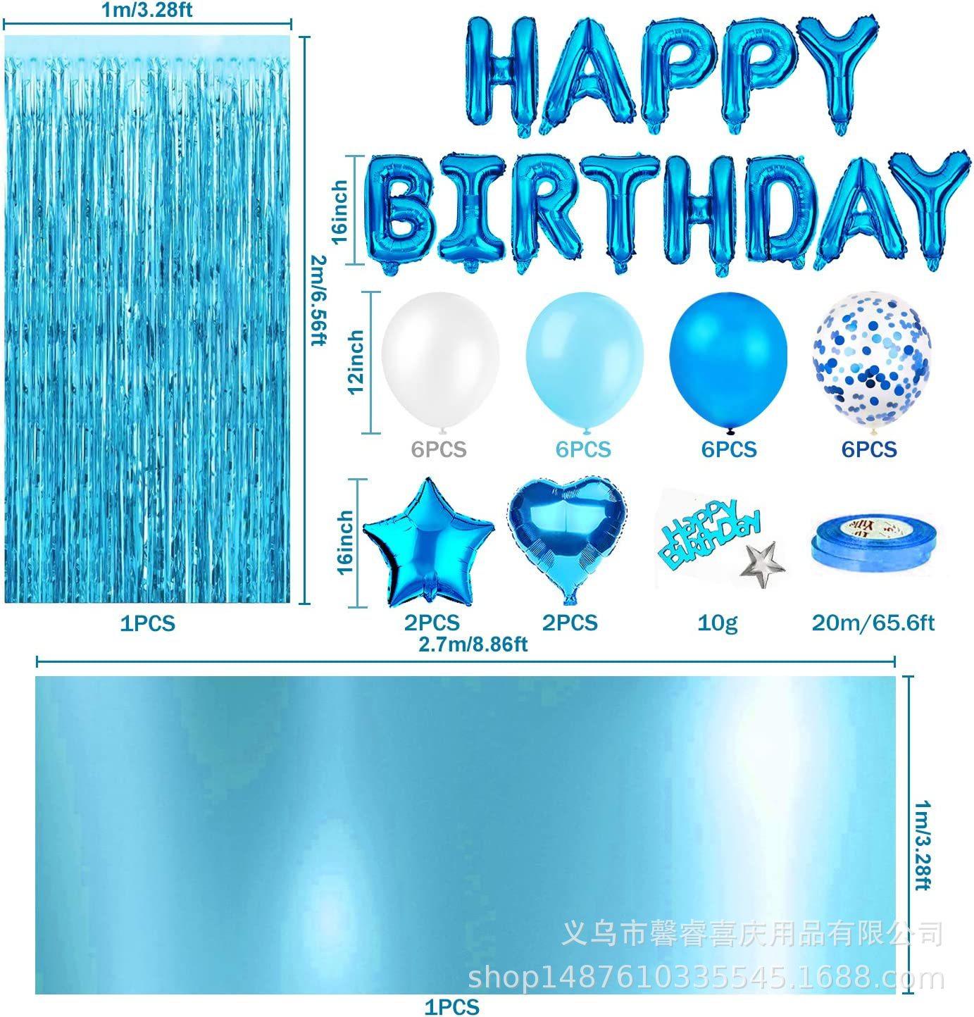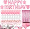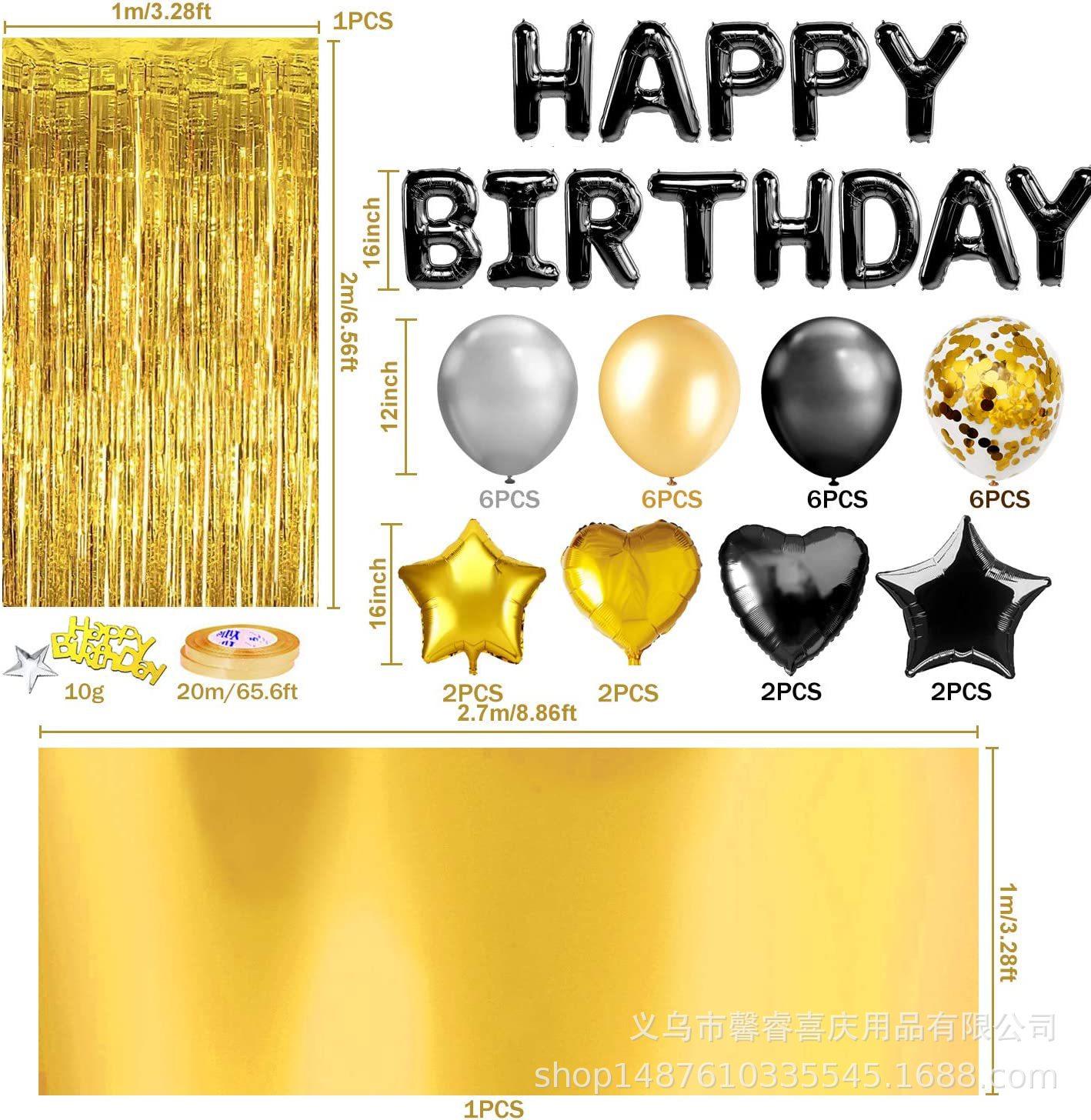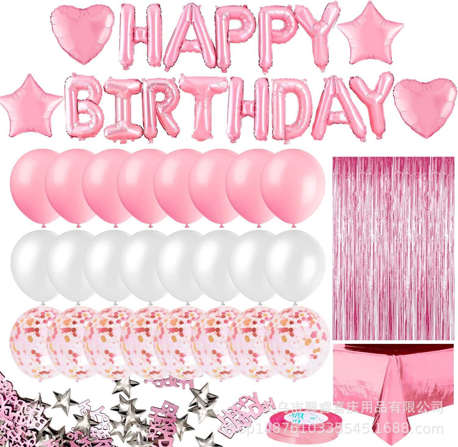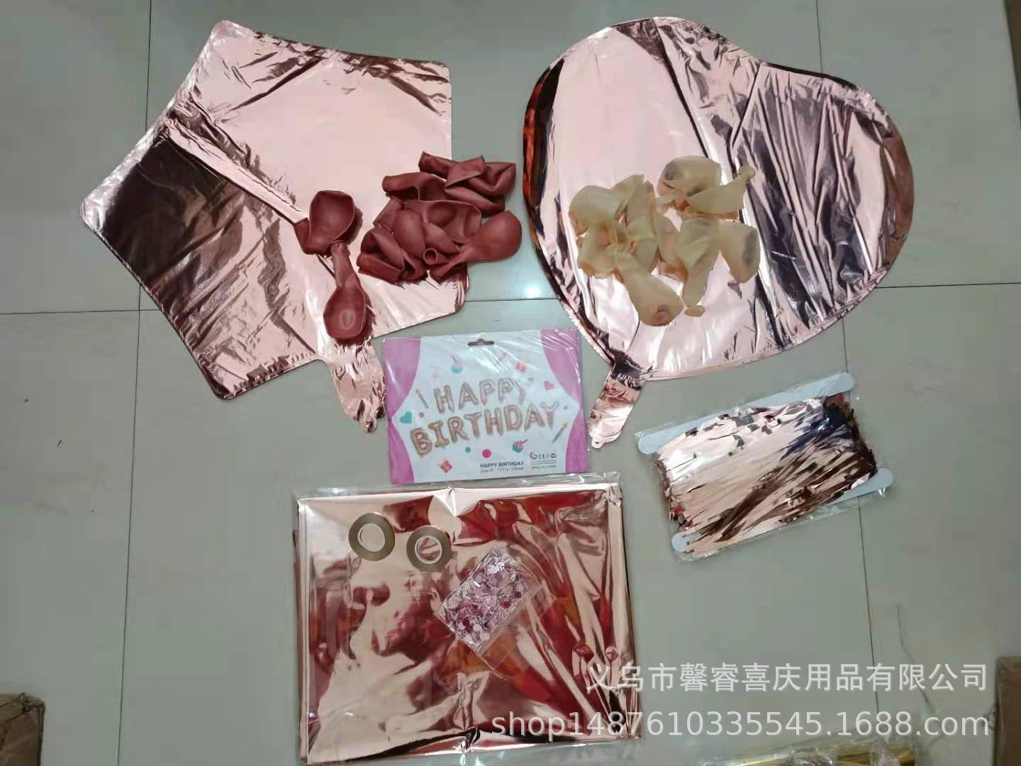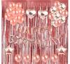 Mantel de oro rosa transfronterizo de Amazon decoración de fiesta de feliz cumpleaños cortina de lluvia confeti globo de película de aluminio 46 piezas