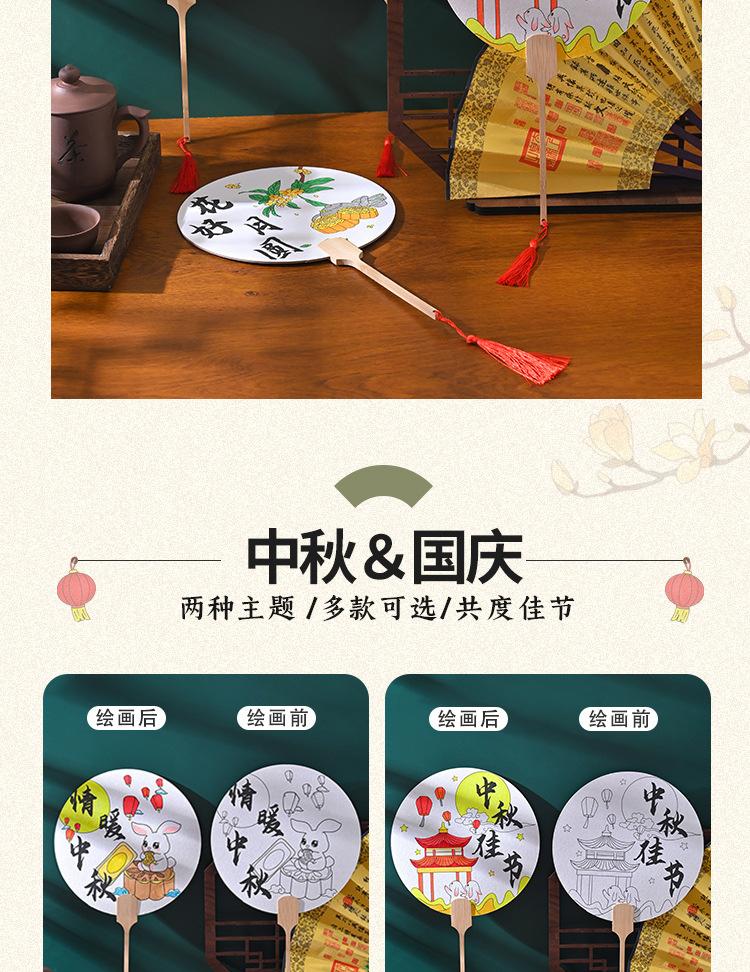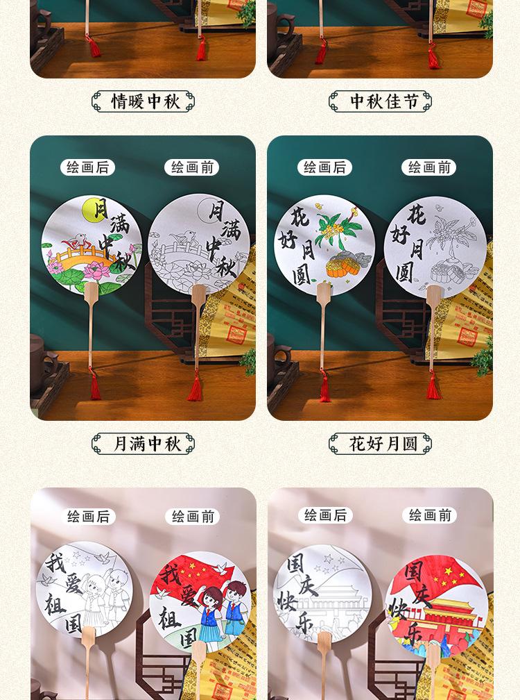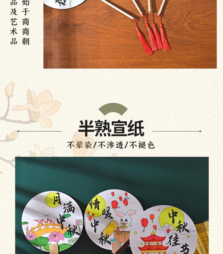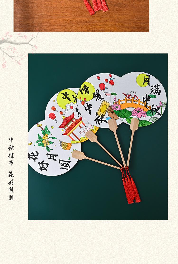 Festival del Medio Otoño abanico redondo hecho a mano diy pintura abanico paquete de materiales para colorear estilo nacional patrón infantil boceto a línea productos semiacabados