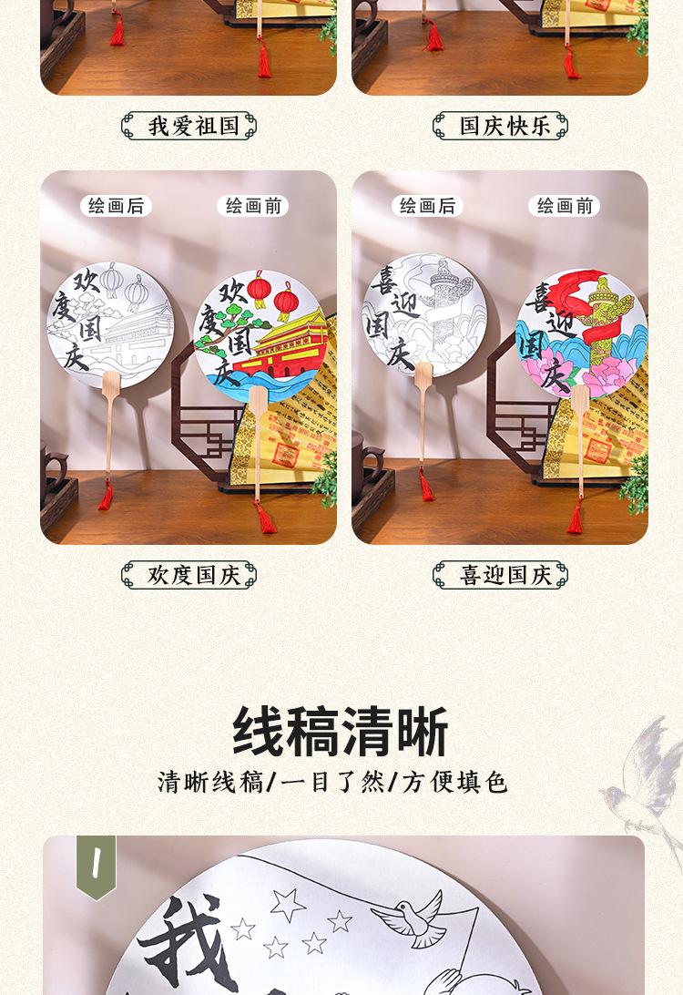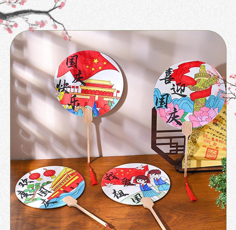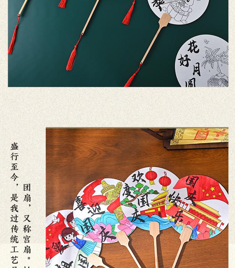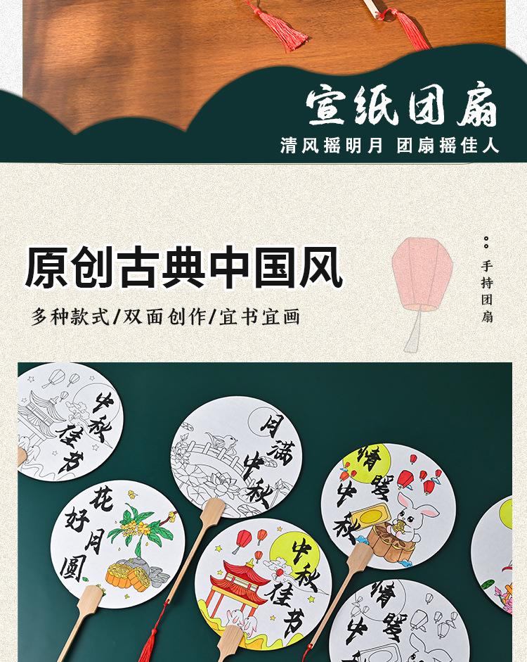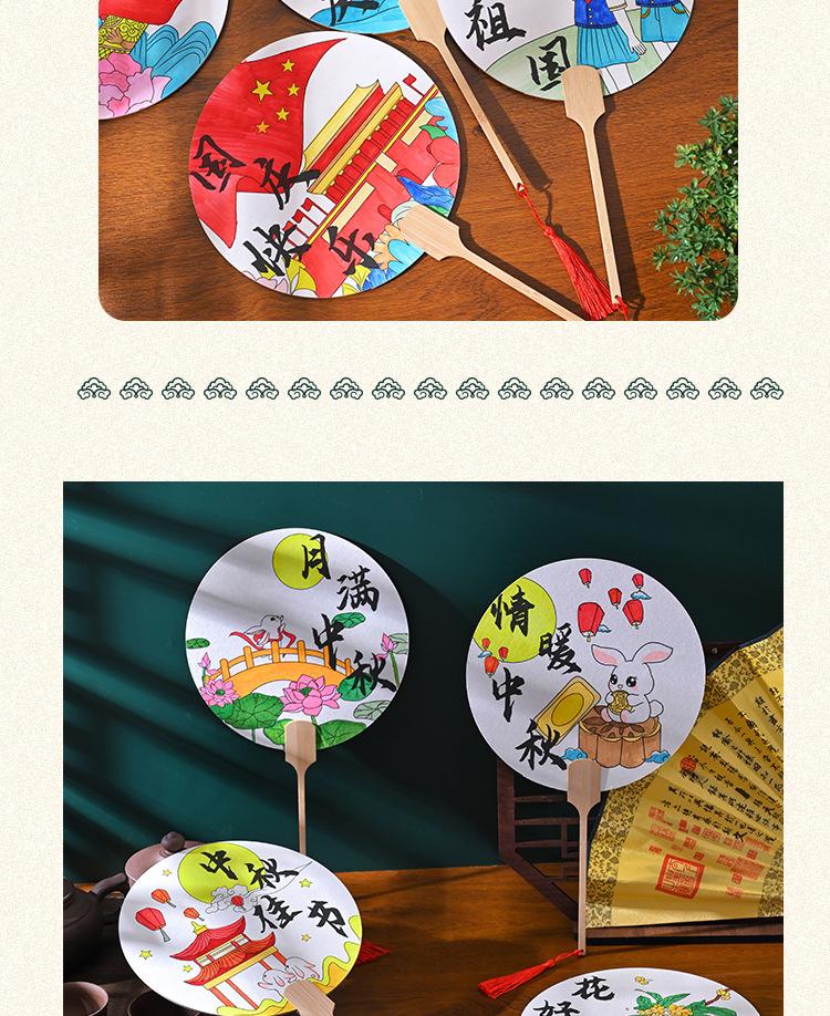 Festival del Medio Otoño abanico redondo hecho a mano diy pintura abanico paquete de materiales para colorear estilo nacional patrón infantil boceto a línea productos semiacabados